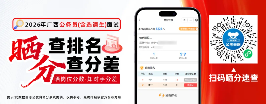 面试资格审查问题咨询可与《广西壮族自治区2026年度考试录用公务员职位计划表》所列资格审查单位联系。