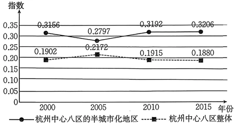 1.2000—2015年杭州中心八区的半城市化地区()