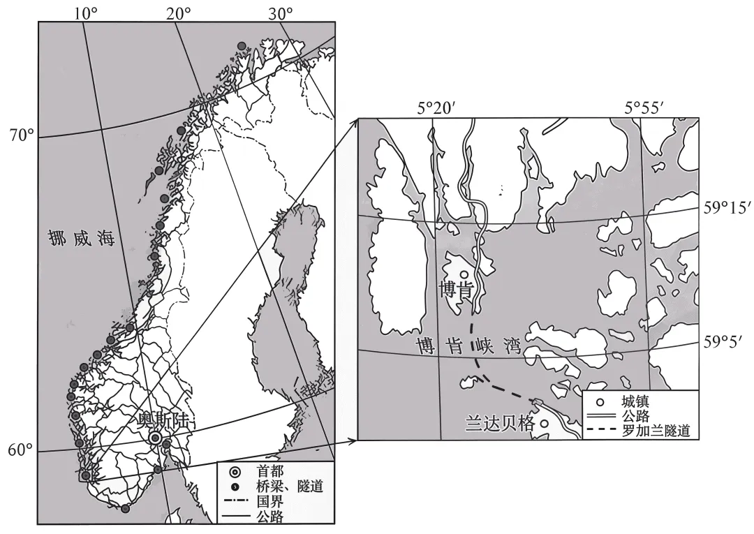 挪威位于欧洲西北部,其公路建设中桥梁、隧道比例较高。博肯峡湾是挪威西部重要的深水航道。为取代原有间歇性通航的轮渡,挪威正在该峡湾修建全球最深的海底公路隧道——罗加兰隧道(最深处距海面392m)。该隧道通车后,将极大缩短两岸城镇通行时间。如图示意挪威本土公路网及罗加兰隧道位置。
