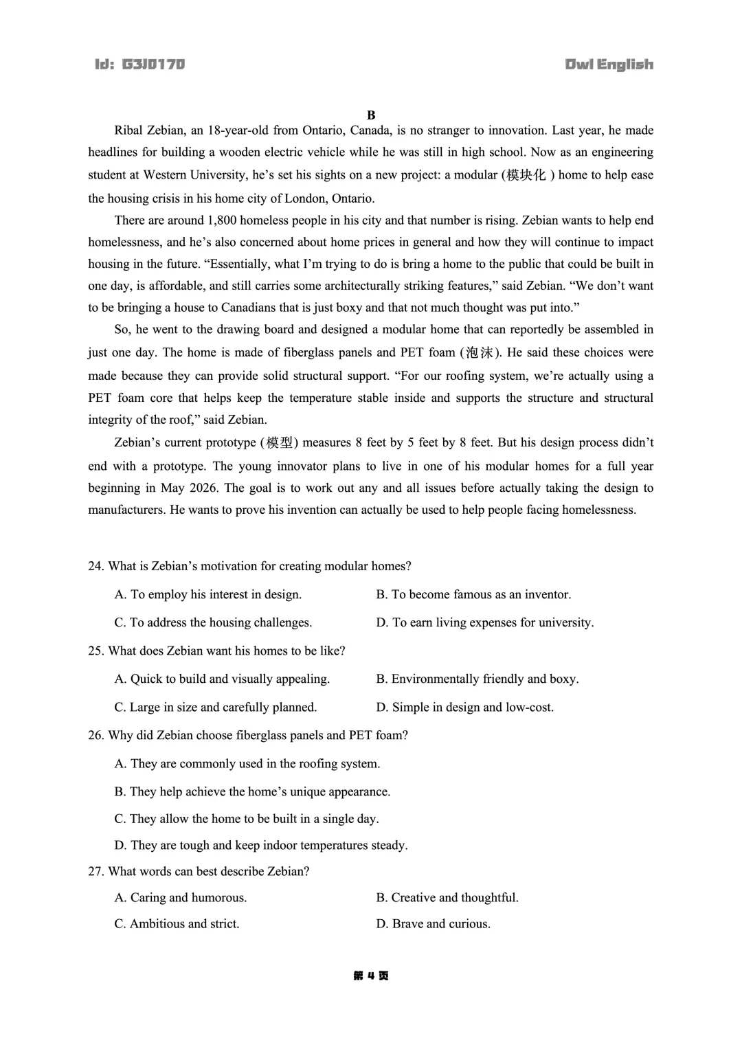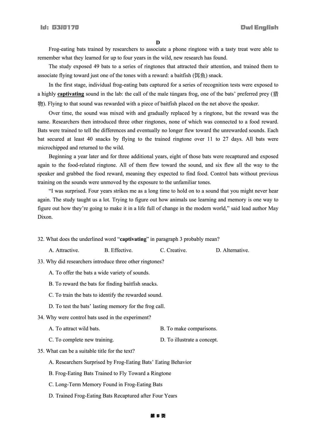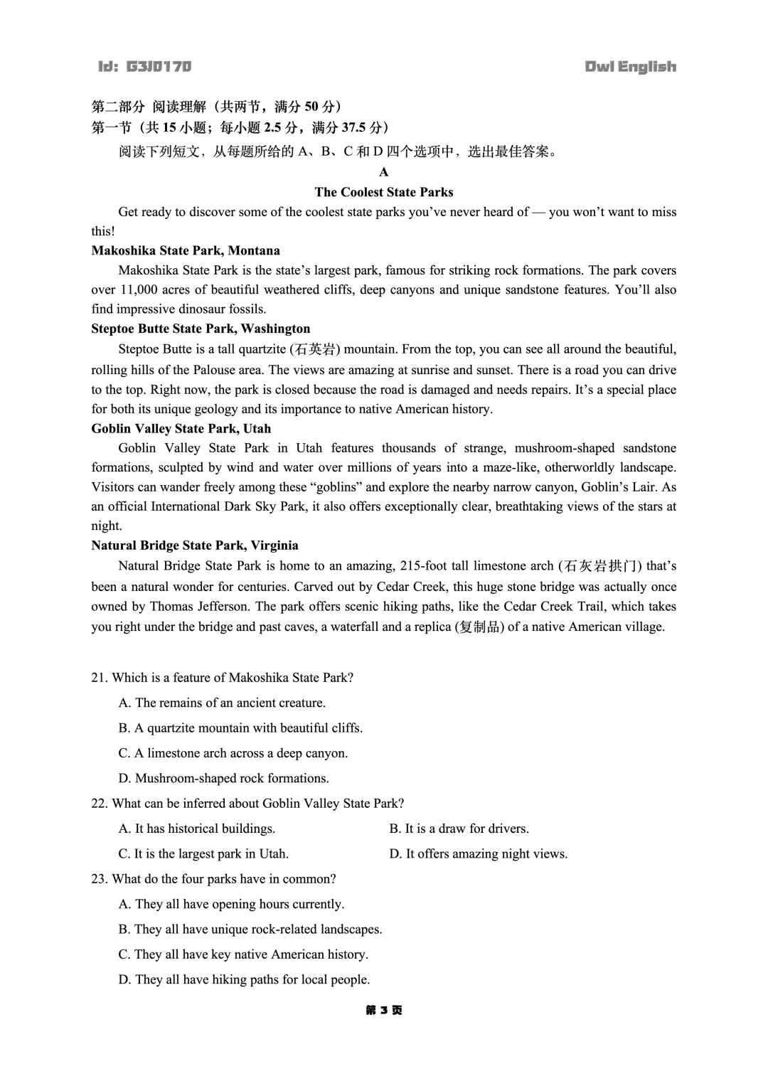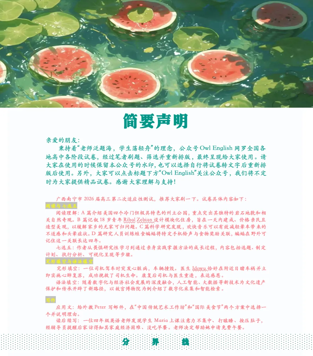 Attention:文末有试卷链接