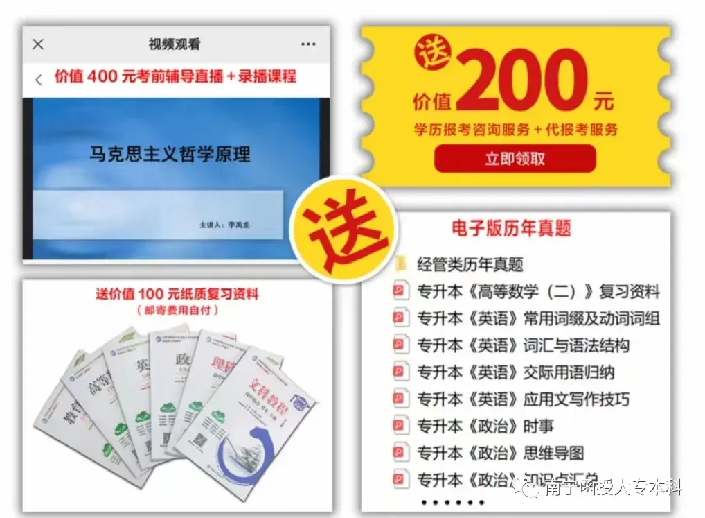 凡是在本函授站报读的考生,由函授站统一赠送内部成人高考辅导电子资料一套,过关率高