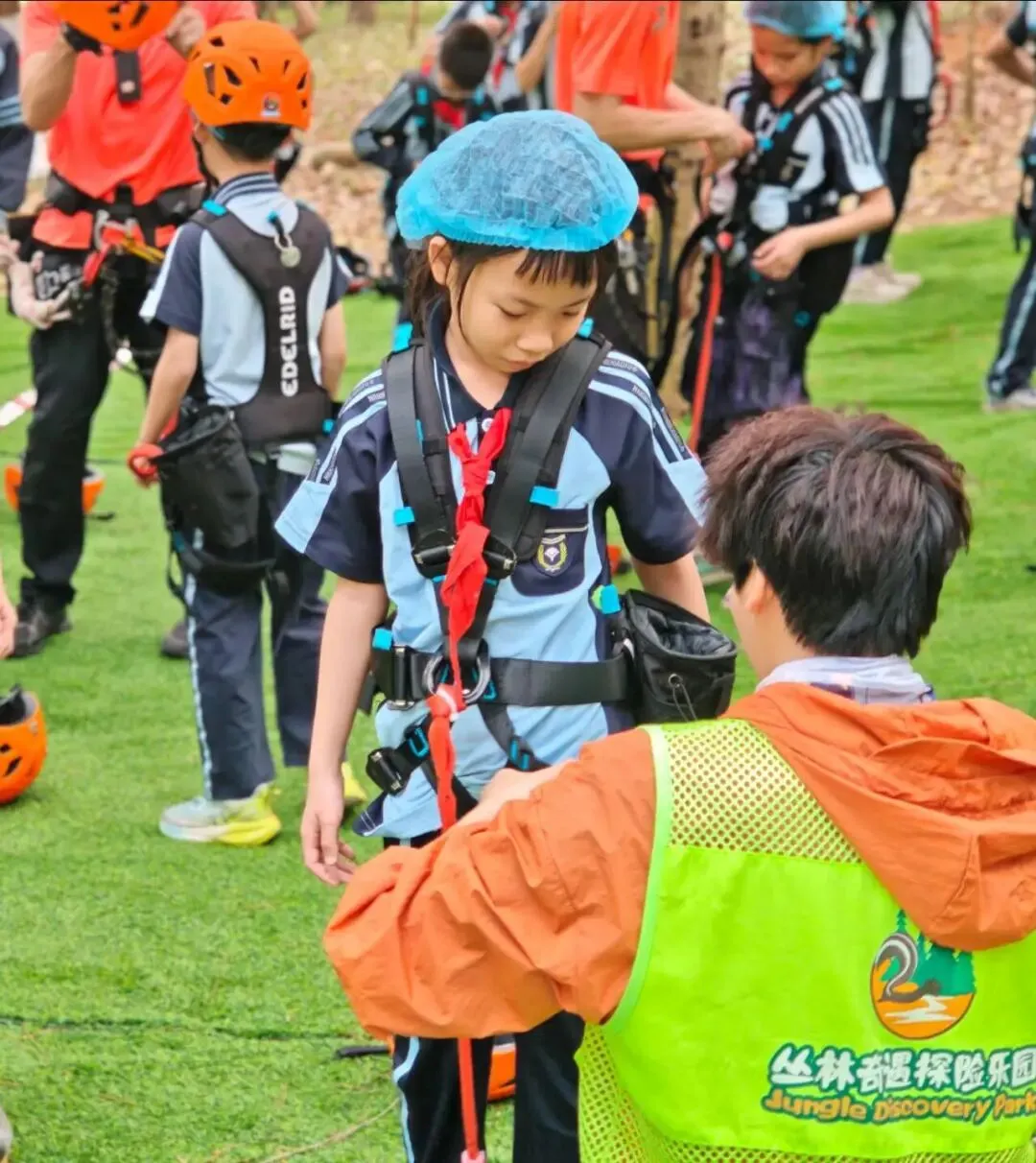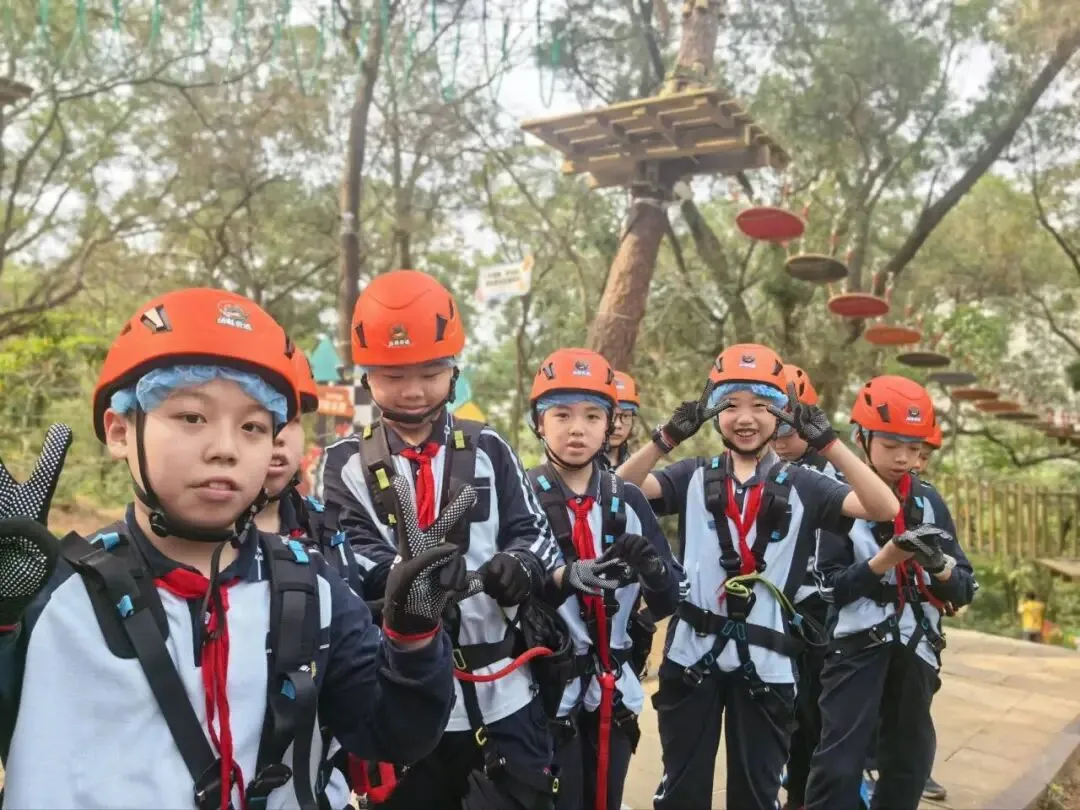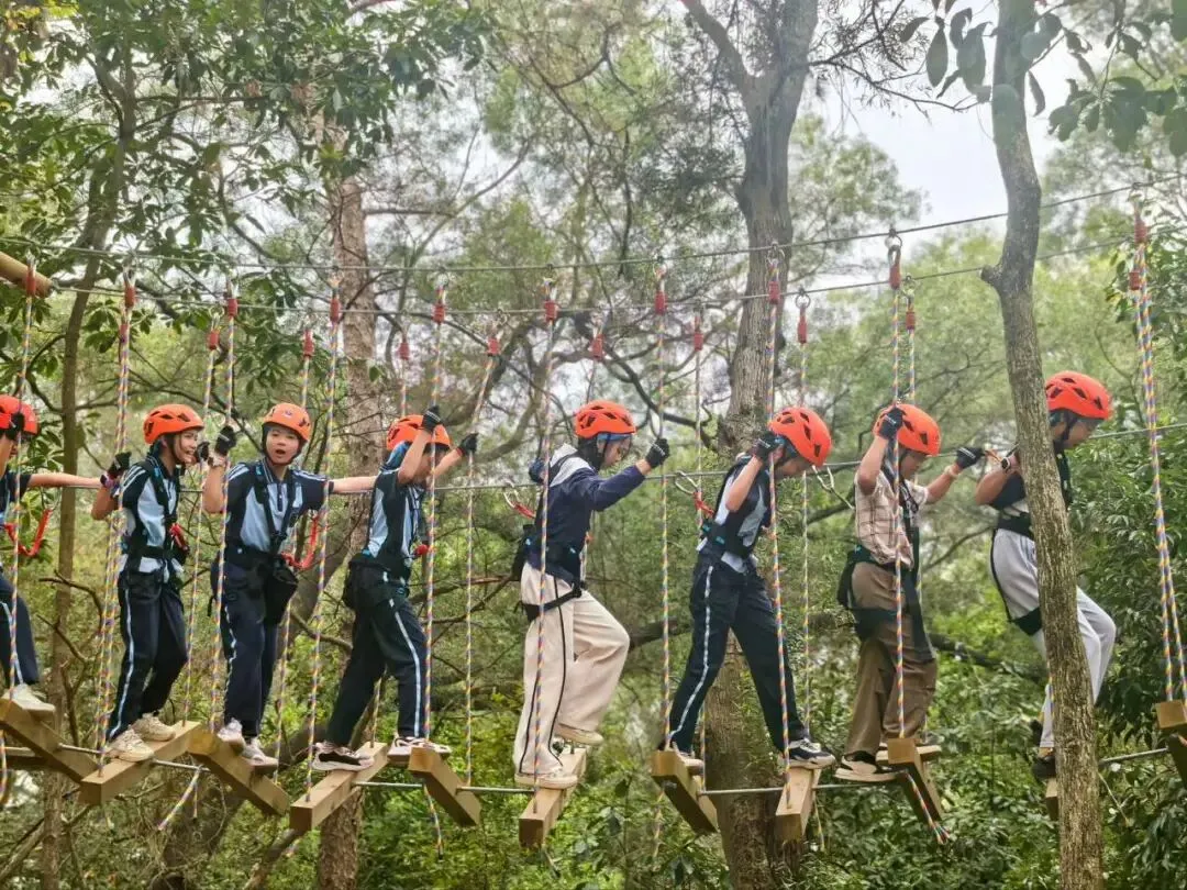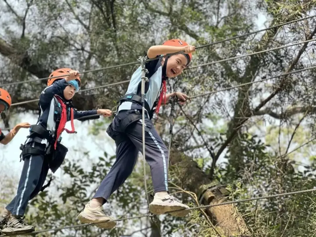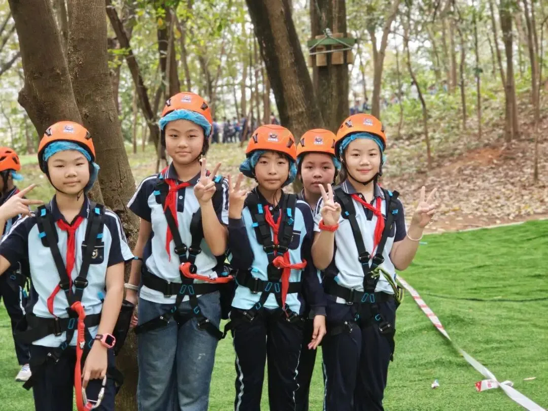 伴着春日暖阳,四至六年级的同学们来到南宁市狮山公园,在专业教练的带领下,开启了一场充满勇气与挑战的“丛林奇遇”。