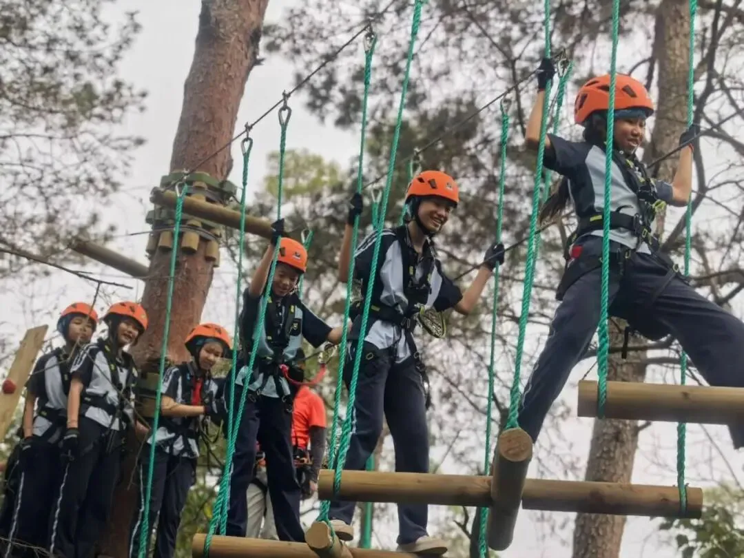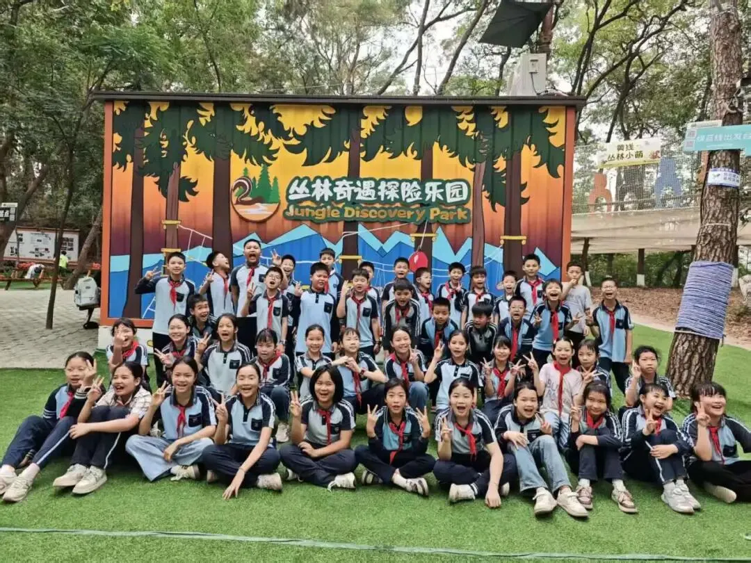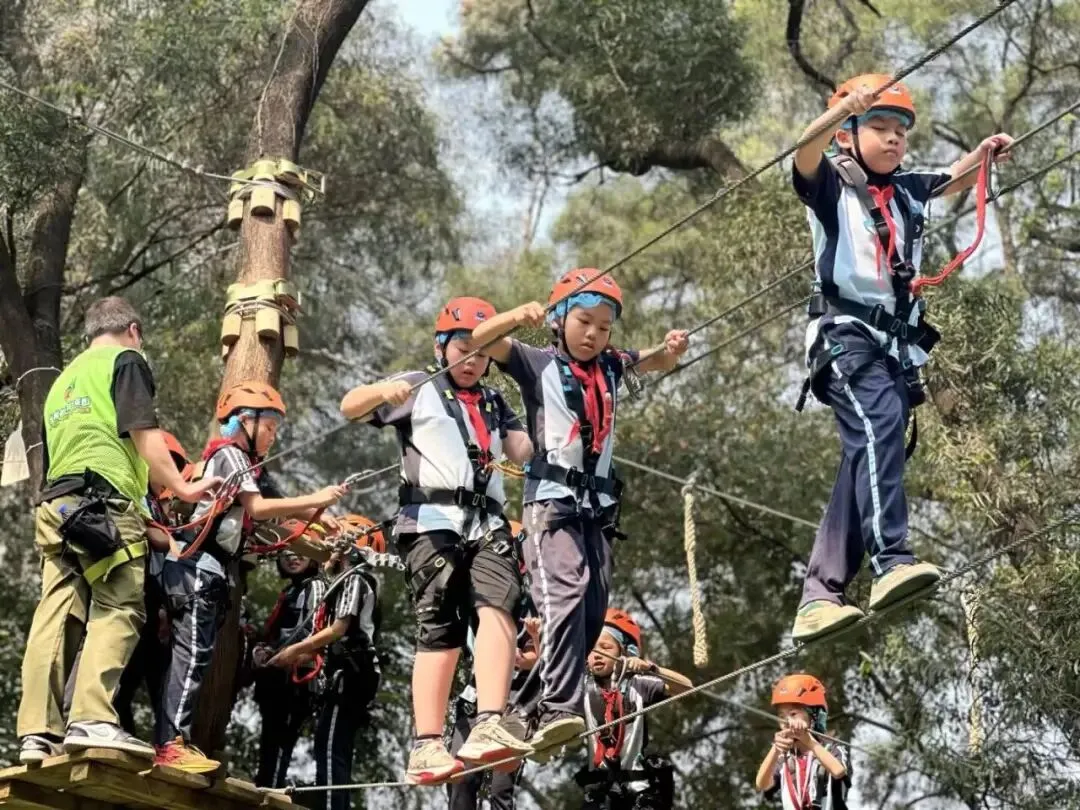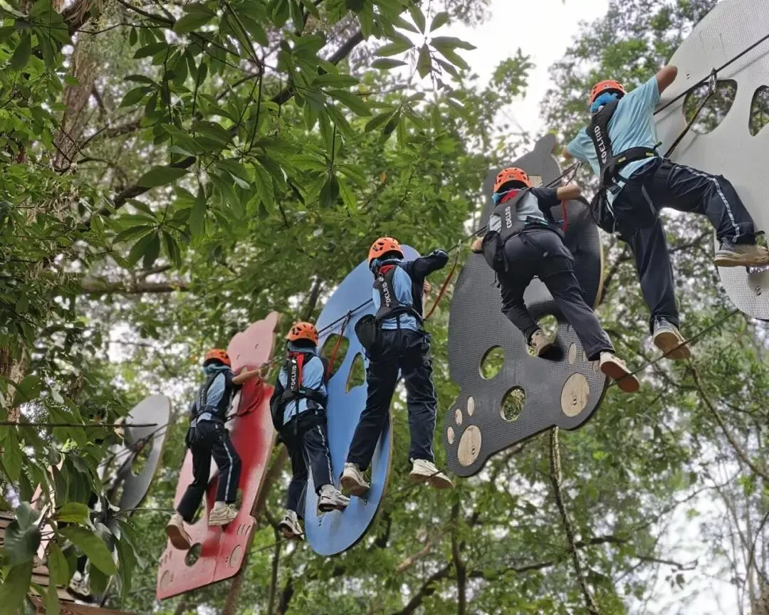 伴着春日暖阳,四至六年级的同学们来到南宁市狮山公园,在专业教练的带领下,开启了一场充满勇气与挑战的“丛林奇遇”。