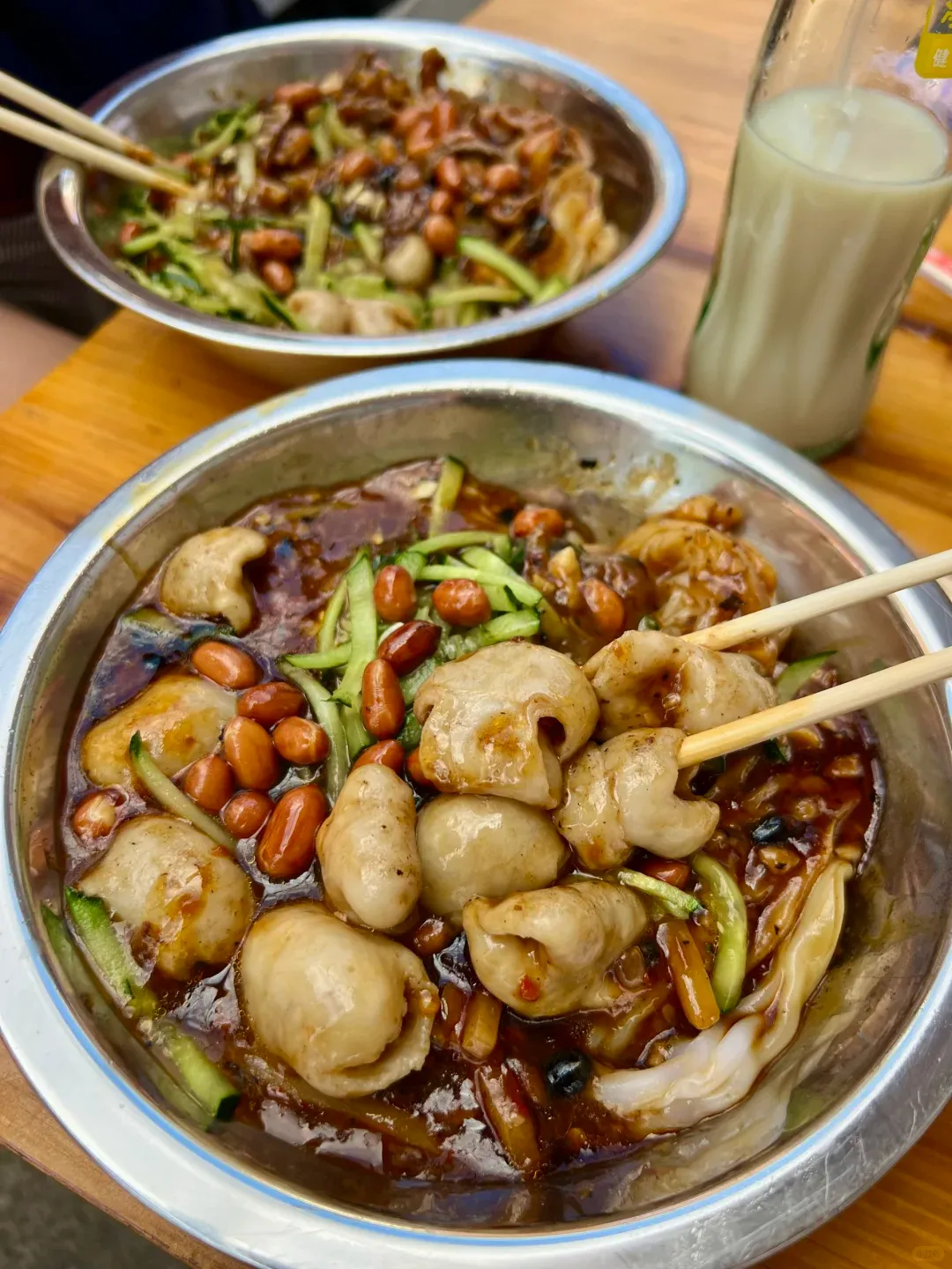 2. 友缘老友大肠干捞 肠头处理很干净,还得是大颗的,Q弹有嚼劲。花生米脆香,黄瓜丝清爽,酱汁是灵魂,拌匀了以后,那个味道,绝了!重口味爱好者必冲。