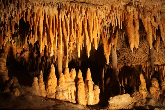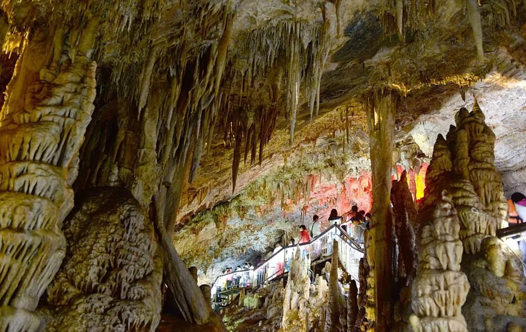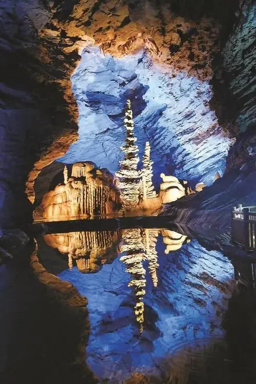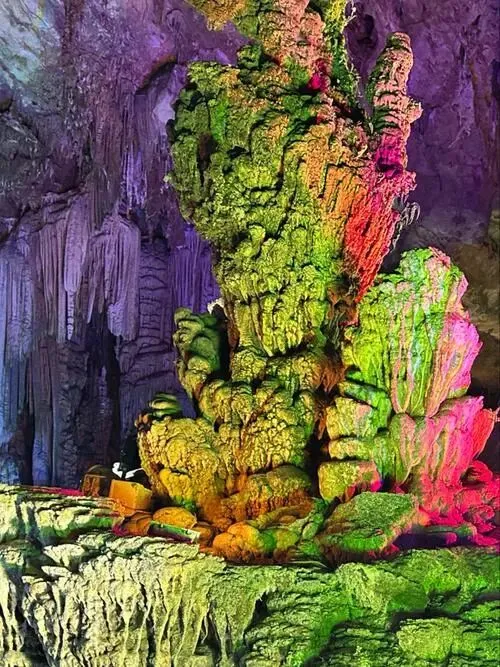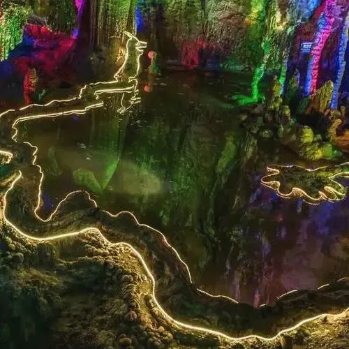 洞中的石乳、石笋、石柱、石墩、石幔千姿百态,或如凤凰起舞,蟒蛇盘亘;或如乌龟赛跑、母鸡孵蛋;或如熊猫嬉戏,仙女下凡,栩栩如生,惟妙惟肖。