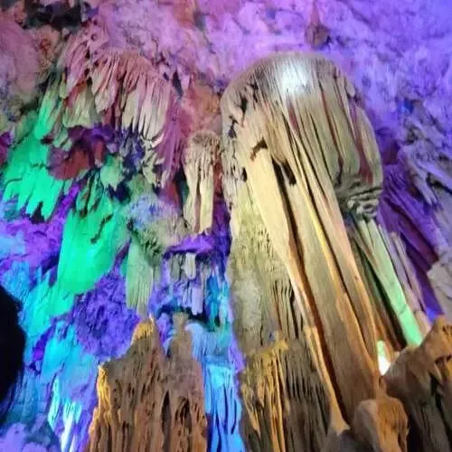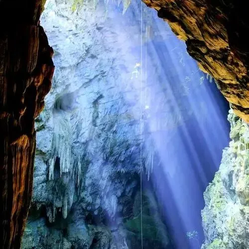 岩洞处于梁满山山腹,岩洞窟窿状若海螺,洞分三层, 游道曲折迂回,石笋重重,柱幔叠叠,峡窍盘错,扑朔迷离。
