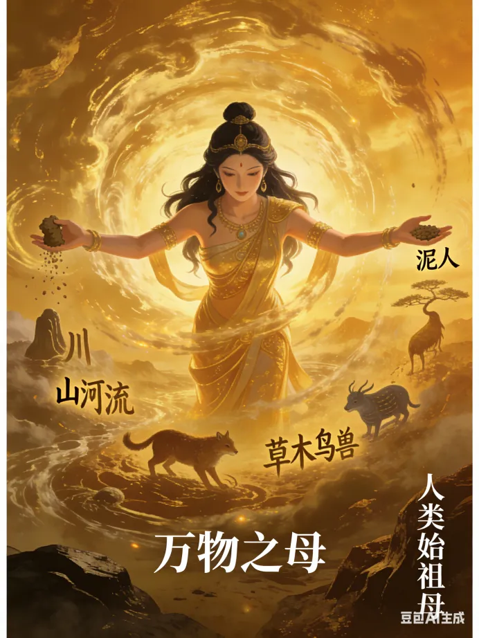 创世起源传说:在壮族原生神话中,天地混沌之初,姆六甲从旋转的气流中诞生,是天地间第一个生命。她撑开天地,用泥土捏造人类,用自己的身体化育山川河流、草木鸟兽,创造了世间万物;同时她定下了男女婚配、生育繁衍的规则,被壮族人尊为 “万物之母”“人类始祖母”。