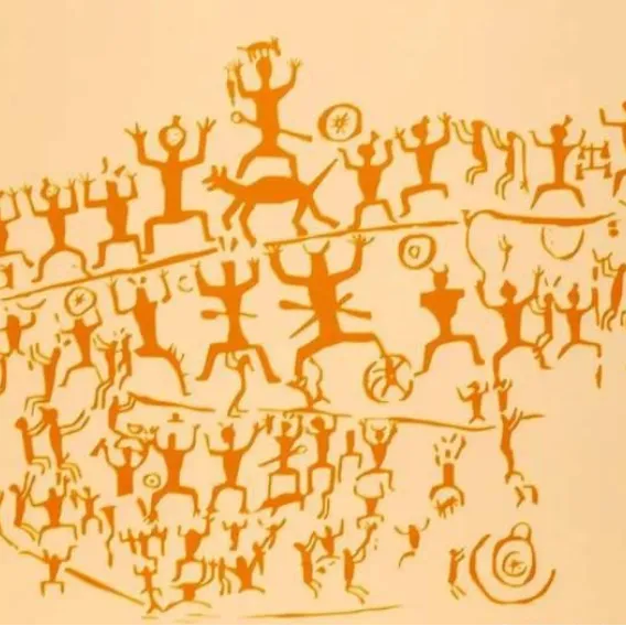 左江花山岩画独特的“蹲式人形”也是壮族蛙图腾的表现形式。