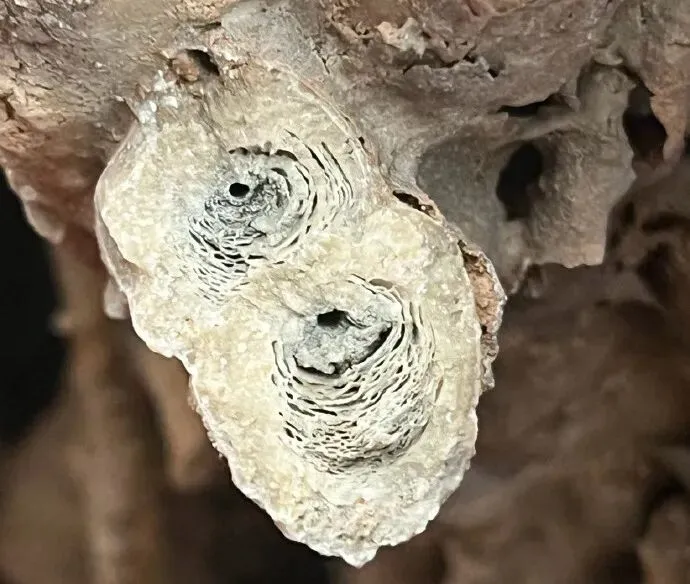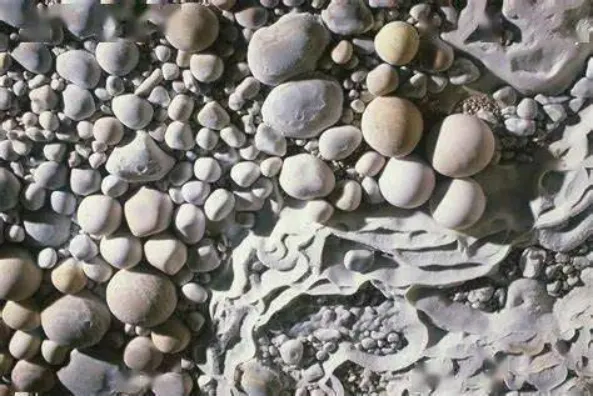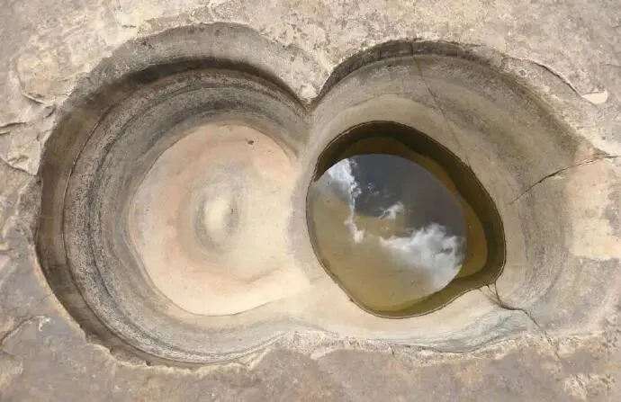 三是穴珠:池水中的圆珠状沉积物,具同心圆结构,直径数毫米至数厘米不等。以池水中的砂粒、岩屑等碎屑为核心,滴水扰动使核心持续在水中滚动,碳酸钙逐层包裹沉积,最终形成光滑的球状沉积物。