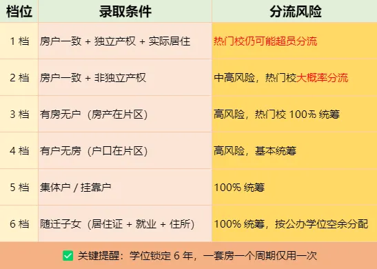 核心政策:录取优先级 + 学区划分