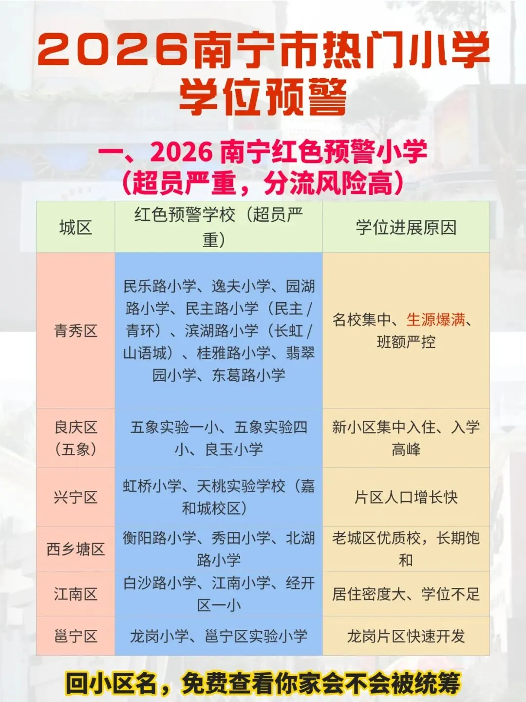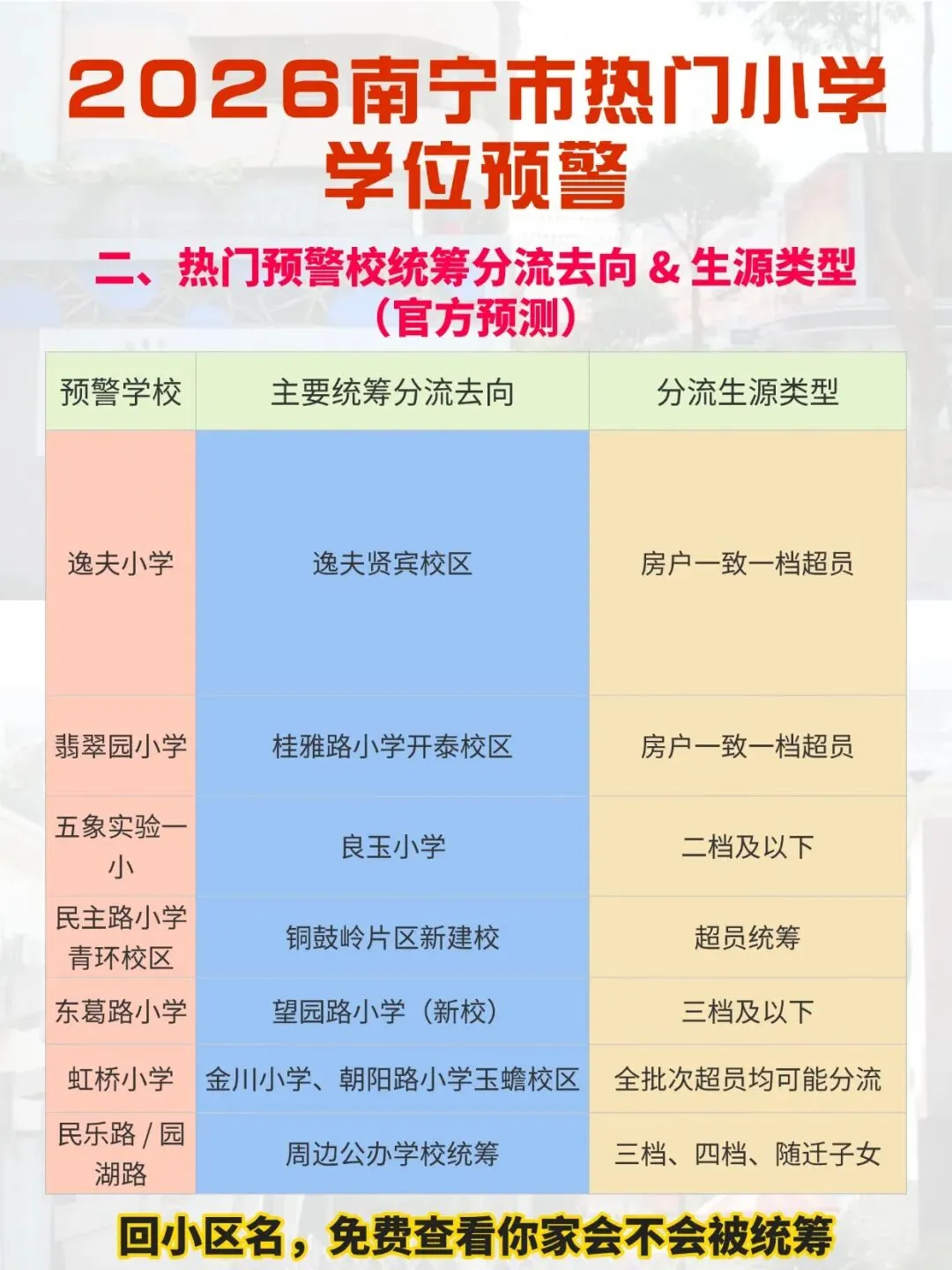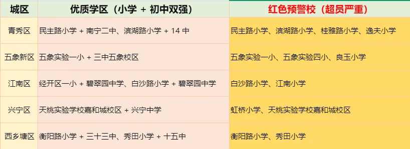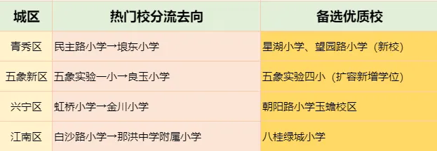 •分流去向:相对就近原则,不跨大城区分配(如青秀区热门校分流至埌东 / 星湖小学);