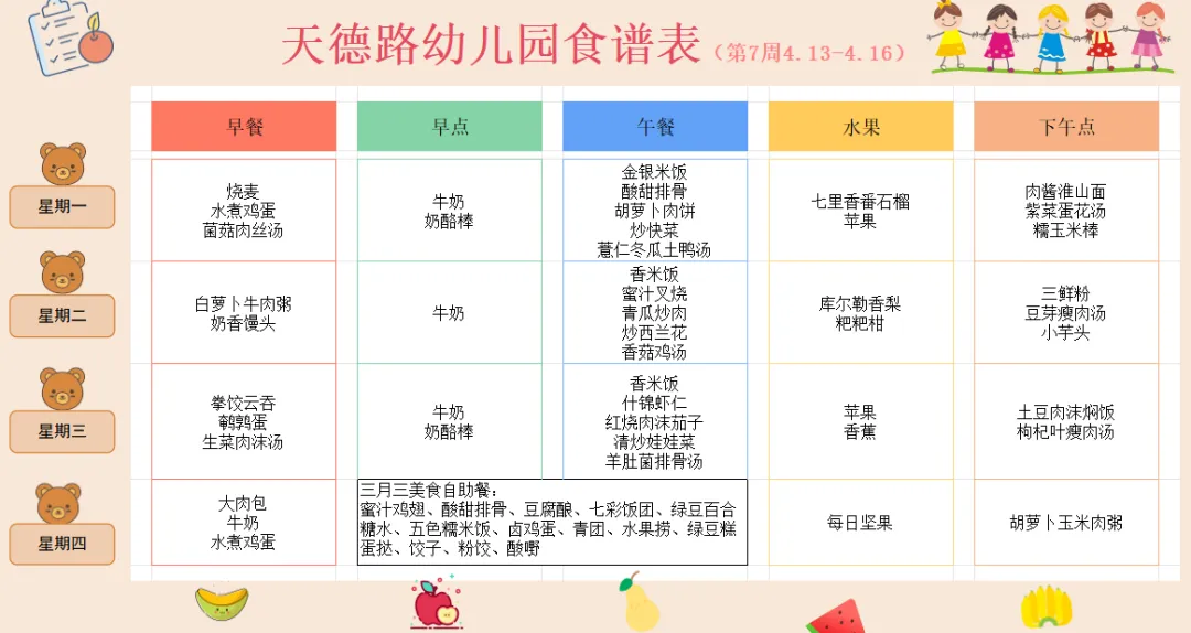 【天德幼·美好“食”光】——南宁市兴宁区天德路幼儿园第七周营养食谱
