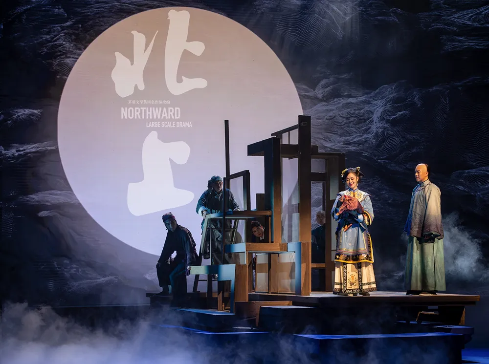 话剧《北上》改编自著名作家徐则臣获茅盾文学奖的同名小说,由一级编剧解涛、青年学者解子昂编剧,中国国家话剧院一级导演、杭州话剧艺术中心艺术总监李伯男执导,通过意大利人小波罗一行由南向北走完运河的心愿拉开全剧的帷幕,以“古今交织”的叙事线索,演绎由浙江杭州至北京通州、绵延运河两端的人间世情,讲述一段跨越百年的运河史诗。
