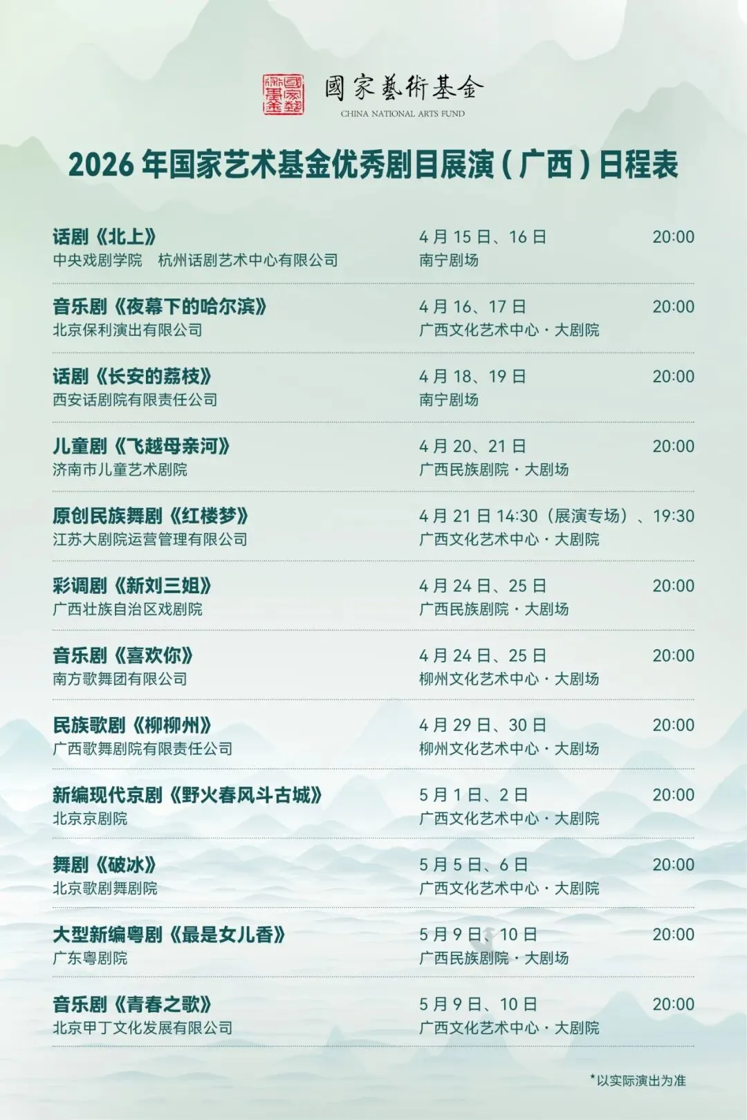 说明:通票限量198套,限广西文化惠小程序平台购买。门票不限场次,不可选座(限定二/三等座区域),每个剧目至多兑换3张,通票至多可兑换8部剧,换完即止。该政策不和其他优惠叠加,需联系客服登记所要兑换的场次及张数,一经登记,恕不退换、更改。