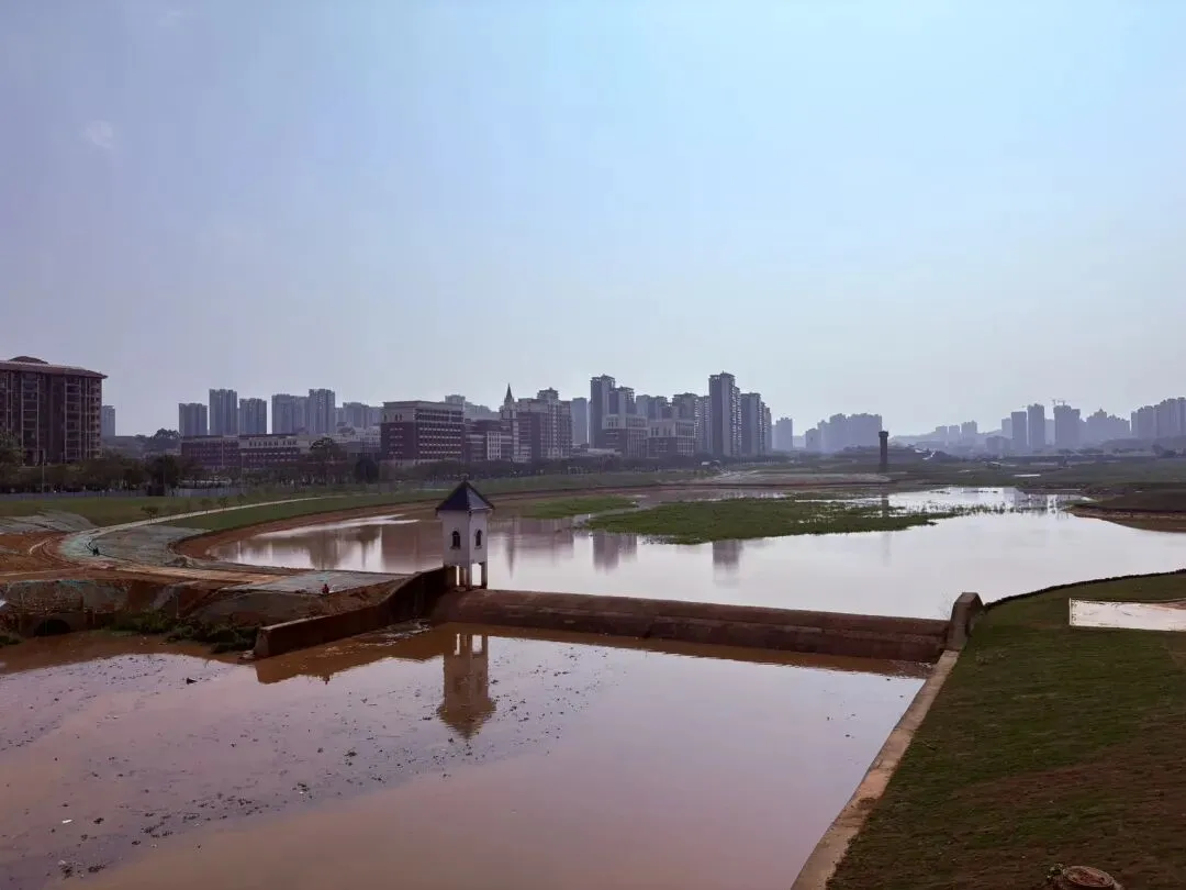 现在的碧象湖,虽然水还黄,但是湖里长出了绿洲,沿岸的绿化也做好了,一片嫩绿跟春天格外应景,看得人神清气爽。
