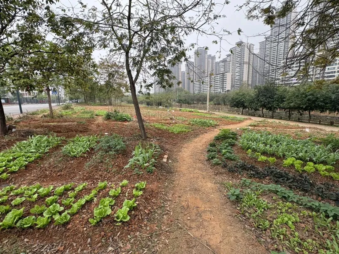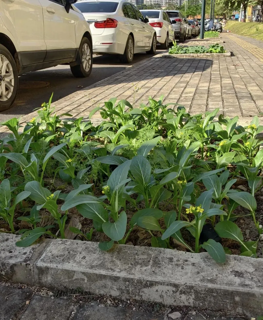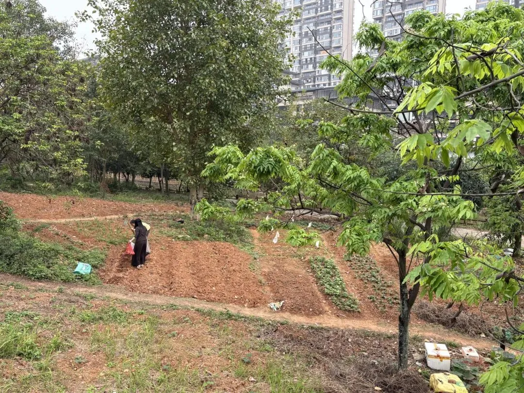 一个人种了,大家就都来了更绝的是「传染效应」。五象湖边那片绿化带,最开始只种了一小块芥菜。种了几天,没人管。旁边的人看见了,心想:她能种,我为啥不能?于是也去开了一块。再过几天,再旁边的人也去了。就这样,一块地、两块地、三块地……像多米诺骨牌一样,整片绿化带都被「占领」了。东边一垄,西边一块,中间用枯枝隔开,谁家是谁家的,清清楚楚。这种场面,在南宁太常见了。青秀一个小区后面的空地,三个月前去还是杂草丛生。再去,已经变成了几十块小菜地,每块都用树枝、砖头、铁丝网隔开,泾渭分明。