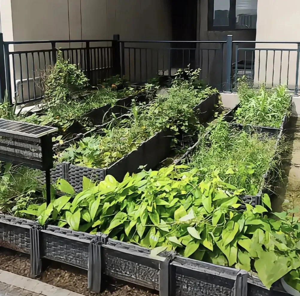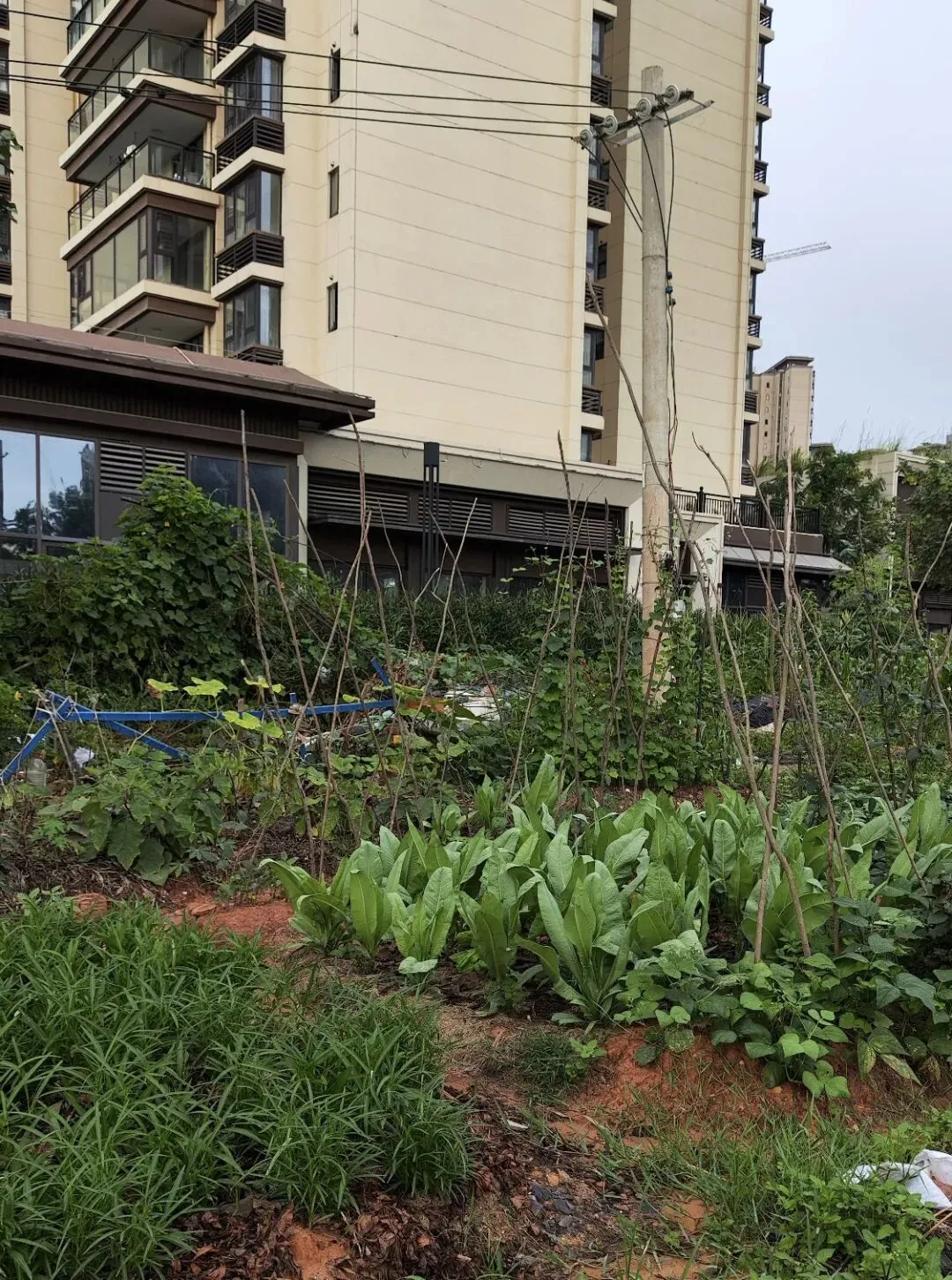 ▲二楼露台变菜园青秀那些高档小区背后,你以为是景观绿化带?走进去一看,红薯叶、芥菜、生菜,整整齐齐,比物业种的草坪还精神。