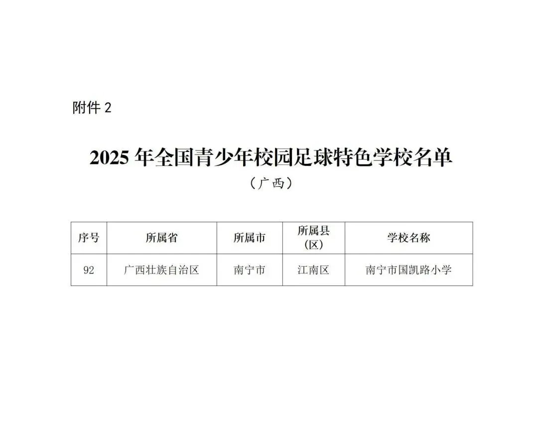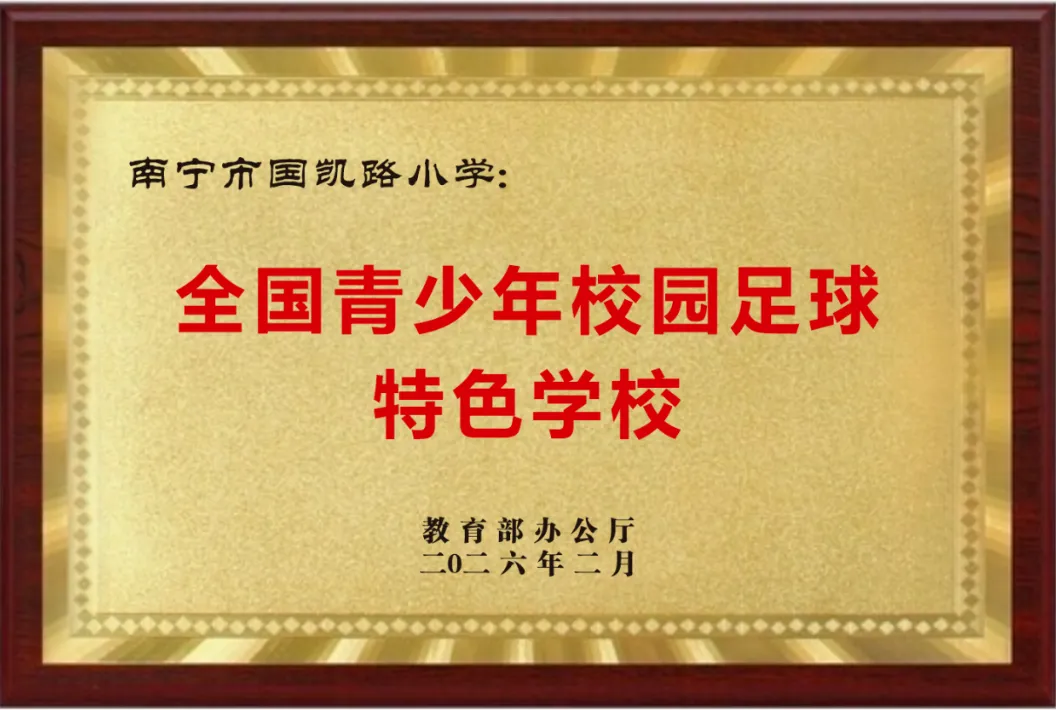 热烈祝贺南宁市国凯路小学荣获全国青少年校园足球特色学校!