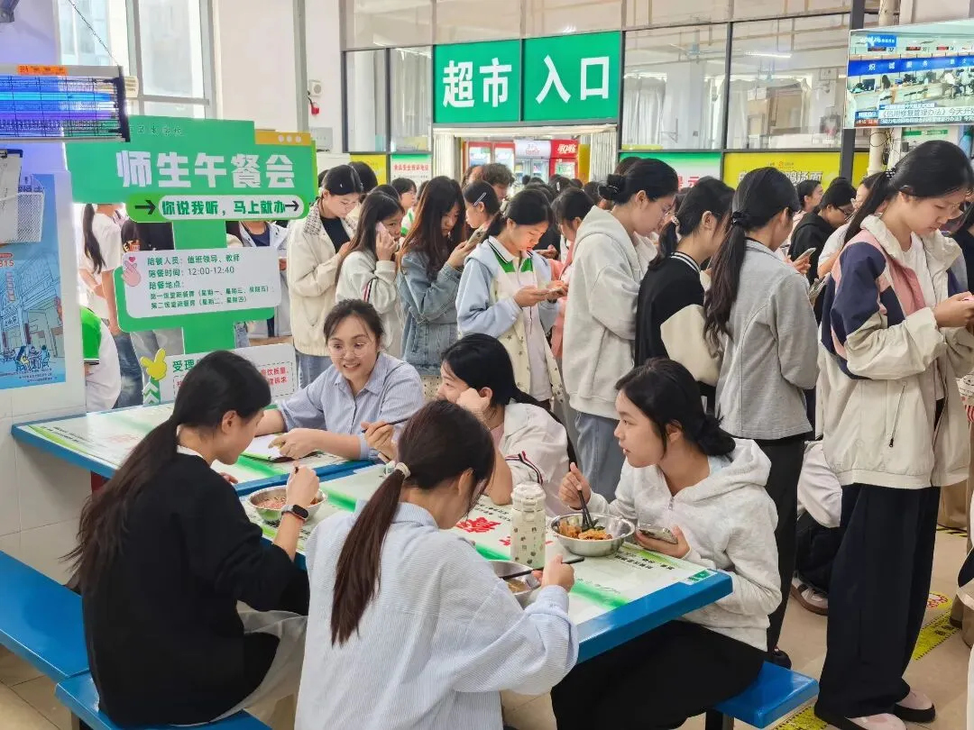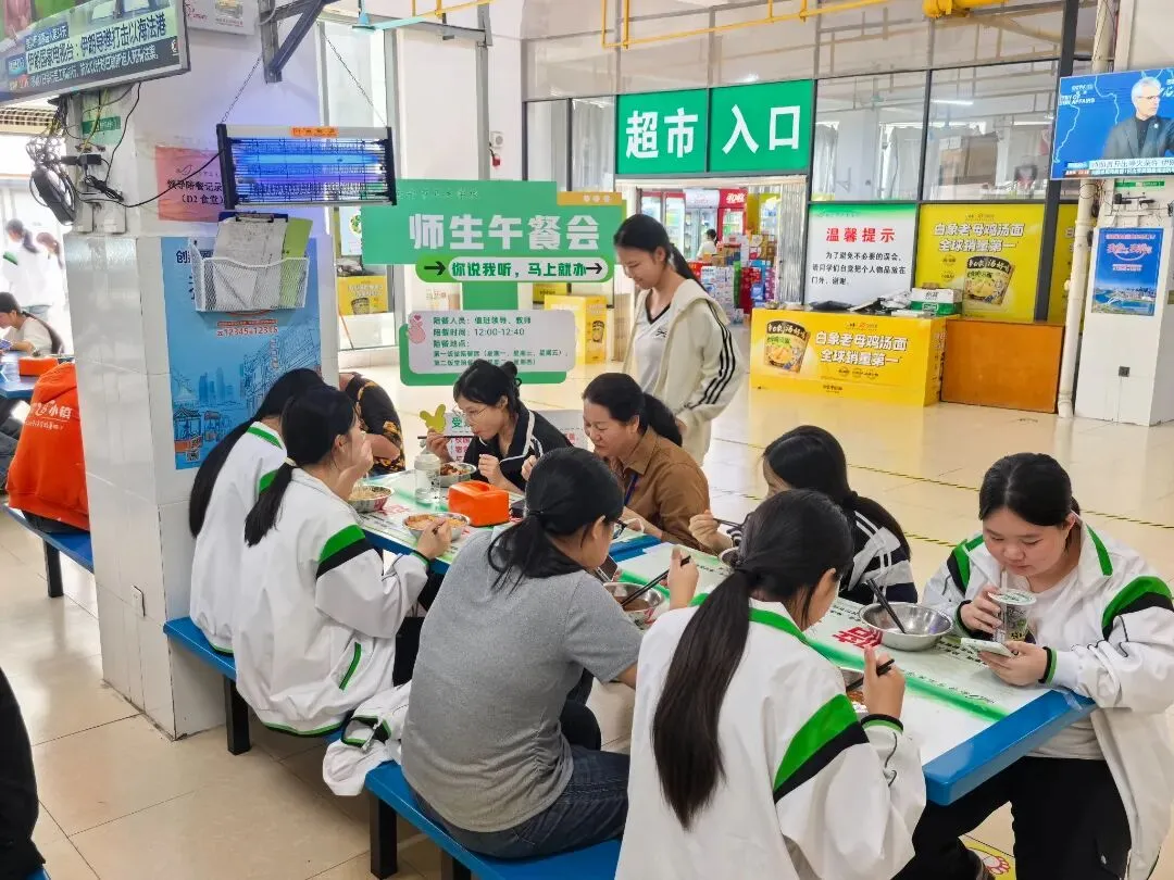 除了集中接访,学校更将沟通融入日常,创新推出“师生午餐会”,让暖心服务无处不在。周一至周五中午12:00-12:40,值班教师与同学们围坐一桌、共进午餐,褪去课堂上的严肃,在轻松愉悦的烟火气中,倾听同学们的心里话。