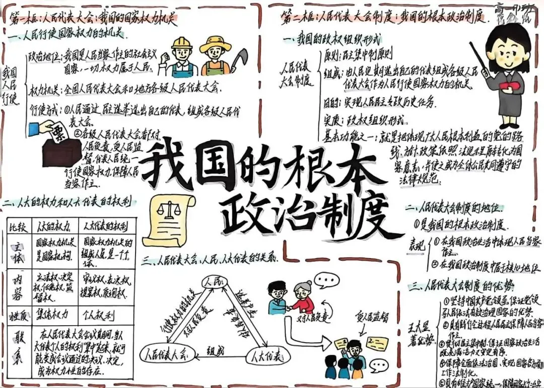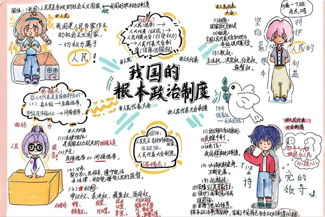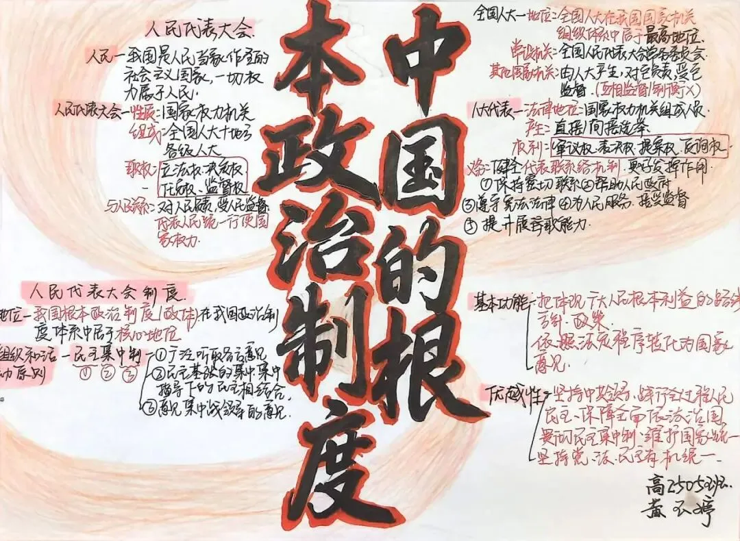 本次活动由高一年级政治备课组精心组织,以梳理制度脉络、明晰权力运行、厚植政治认同为核心主旨,面向高一全体学生开展。活动共征集参赛作品上百件,作品紧紧围绕人民代表大会、人大代表、人民代表大会制度等高中政治核心知识点,涵盖国家权力机关职权、人大代表权利与义务、根本政治制度内涵及优势等重点内容。