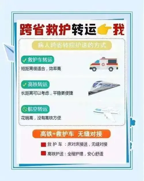 我们提供24小时跨省长途医疗转运服务,专注于危重病人转运及专业救护车租赁。凭借专业的医疗团队和先进的医疗设备,我们确保每一位患者在转运过程中得到安全可靠的照护。