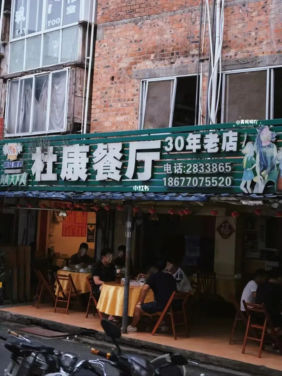 从2002年开到现在的周周饭店,最开始的门店开在明秀小区的后门,现在搬迁在新竹路某处小后花园。