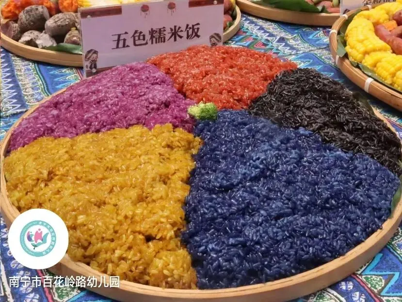 五色糯米饭、艾叶粑粑、假蒌夹、斑斓椰奶等特色佳肴,以食为媒,让幼儿感知传统节日之美,在烟火缭绕中,沐春风、承古韵,岁岁安康,茁壮成长。