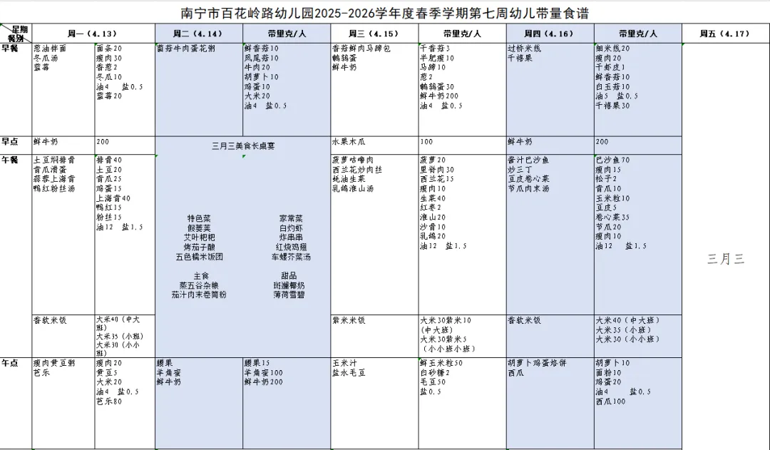【百花·美食】南宁市百花岭路幼儿园第七周幼儿带量食谱