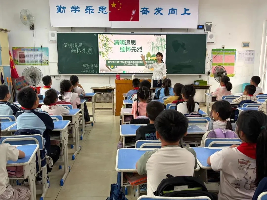 又是一年清明至,缅怀英烈寄哀思。为深入学习贯彻党的二十大精神,落实立德树人根本任务,南宁市二塘小学以党团队一体化联动为核心,在清明节期间,精心组织开展“清明祭英烈 红色永传承”主题系列活动,通过主题晨会、班会、祭扫烈士墓等形式,引导师生追忆革命先辈、感悟英雄精神,让红色基因代代相传、生生不息。