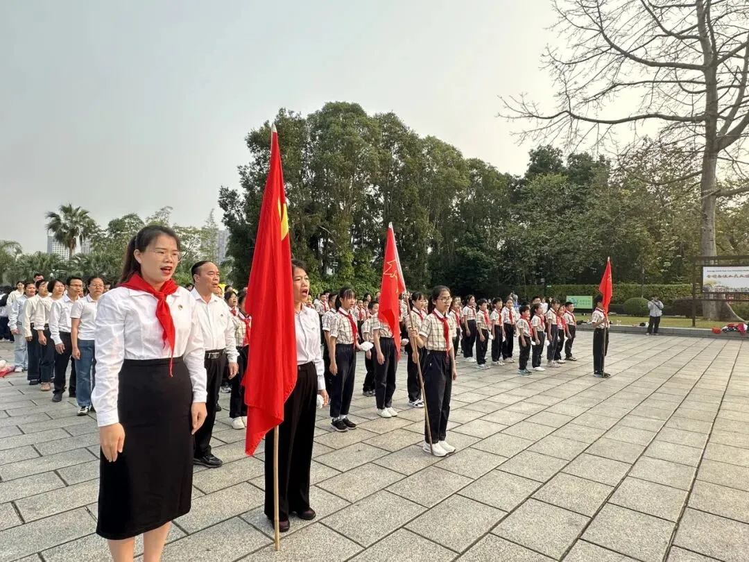 在辅导员带领下,少先队员重温入队誓词、庄严呼号,誓言铿锵有力。