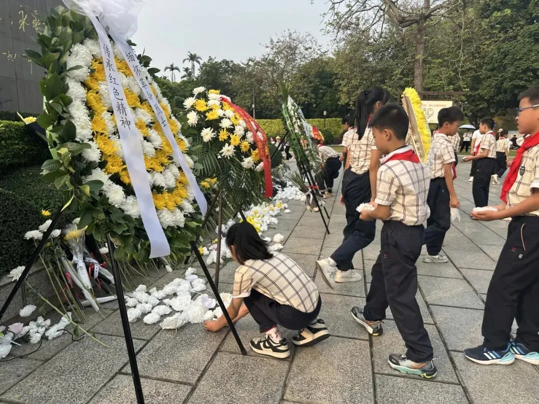 退旗后,师生有序瞻仰纪念碑、敬献白花,以朴素方式缅怀先烈功绩。