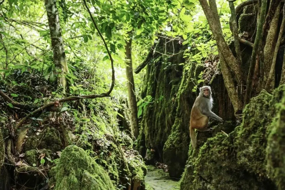 这里是中国四大猴山之一,拥有超多可爱猕猴,可以投喂互动,山林间古木参天,春日漫步其中,满眼翠绿,治愈感十足。