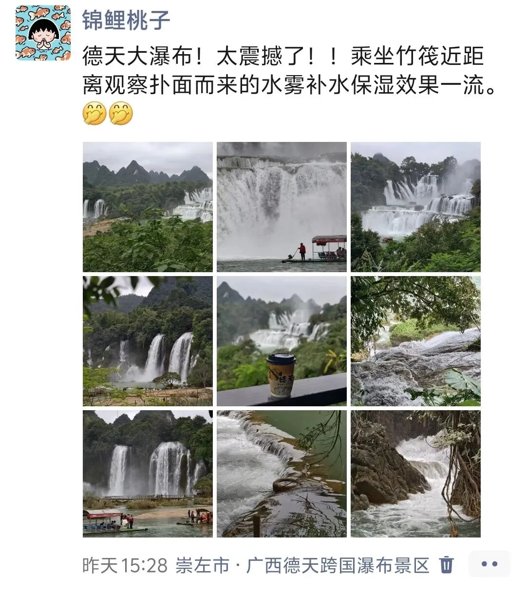 我们毫不犹豫地选择了乘坐竹筏(48元/人),这个决定太正确了!竹筏缓缓驶向瀑布,让我们有机会近距离感受这自然奇观。最有趣的莫过于"一秒出国,一秒回国"的体验——竹筏在水上前行,不知不觉就跨越了国界。