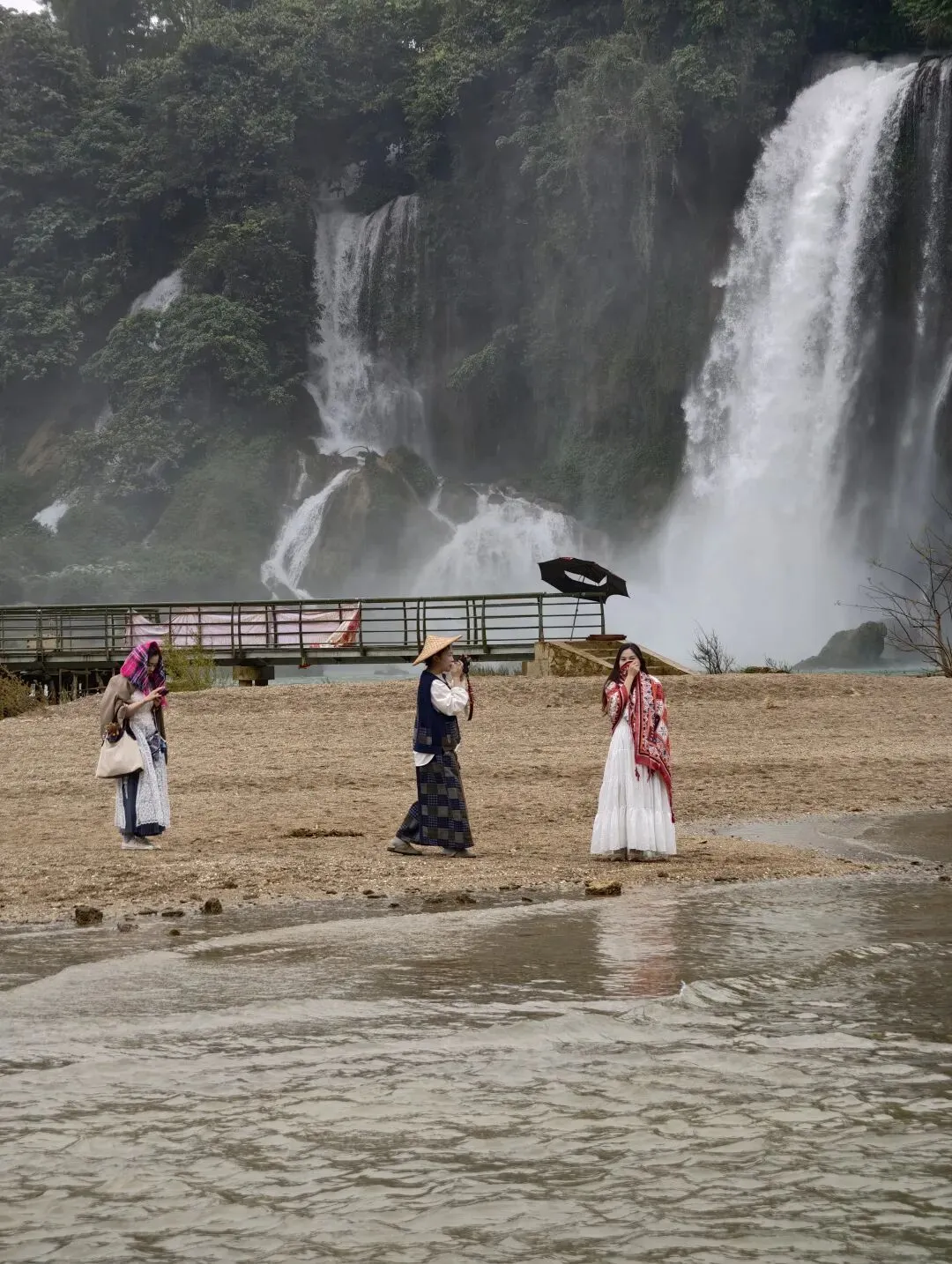 最有趣的是,对面越南境内也有不少游客,他们也穿着民族服装在拍照留念——原来越南也流行旅拍呢!