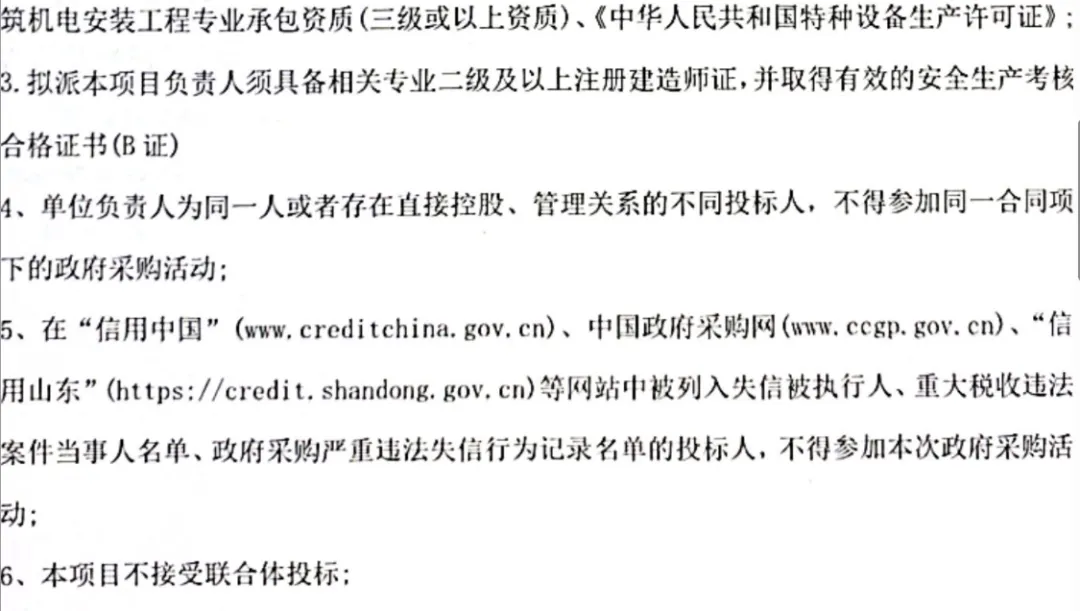(1)具有建筑机电安装工程专业承包叁级及以上资质;