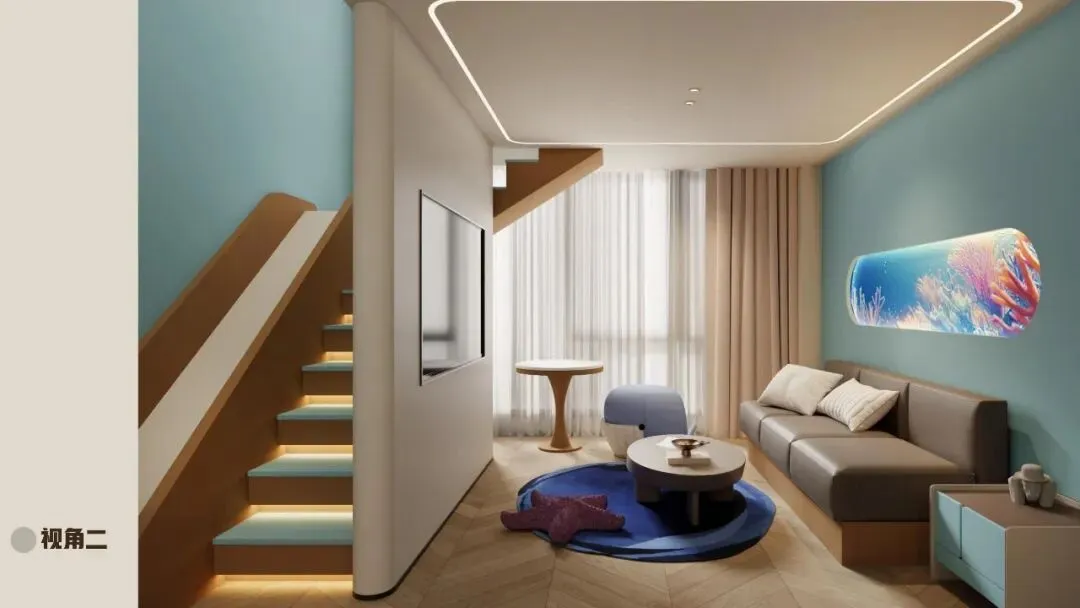 从一楼到八楼,从童趣到极简,「融晟达·海豚酒店」用一层一世界的设计手法,完成了对海洋主题的完整诠释。