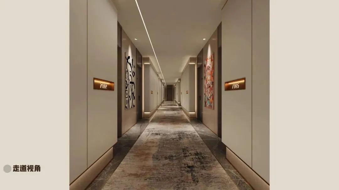 走道效果图同样延续极简+海洋元素。