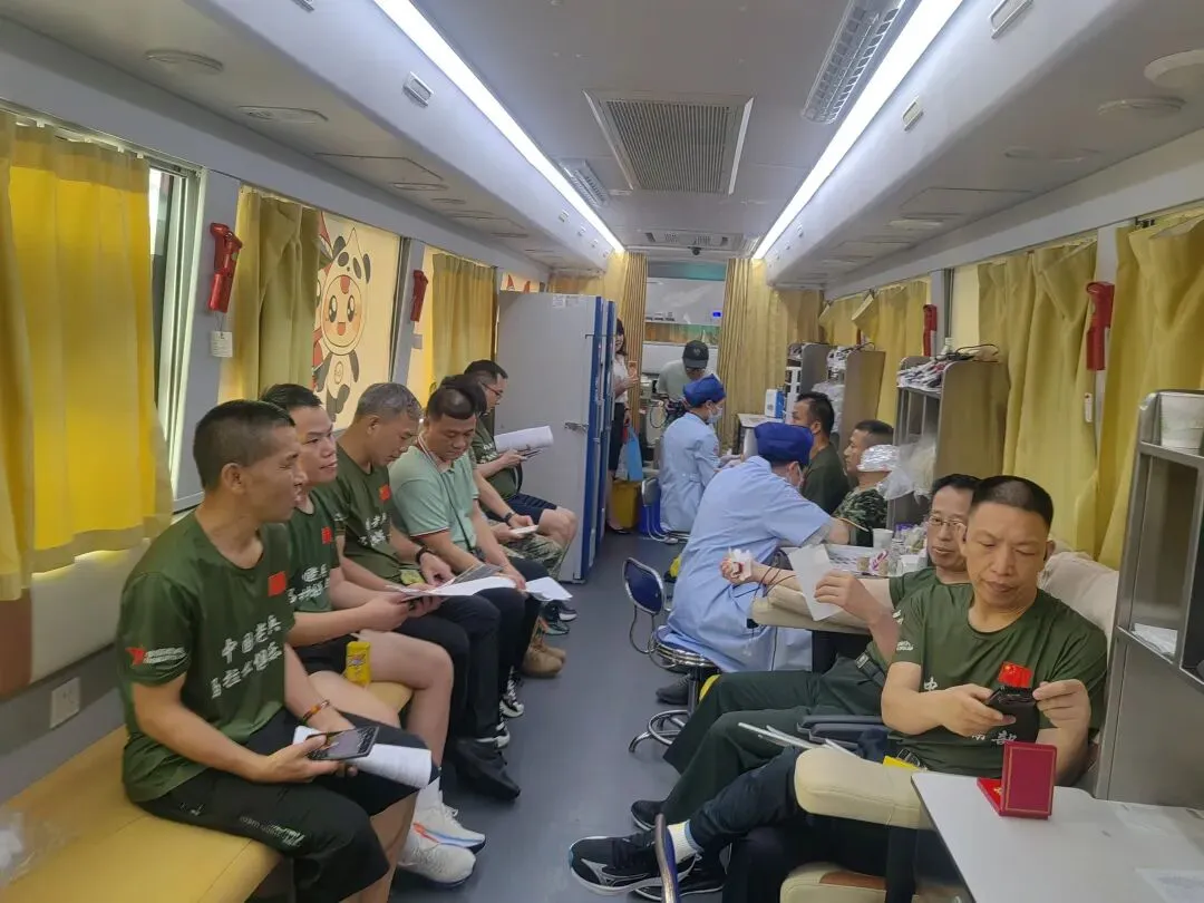 献血现场,战友们在工作人员的指引下,退役军人志愿者们有序登记填表、量血压、健康征询、血液初筛和献血。大家身着统一服装,身姿挺拔、纪律严明,全程自觉排队、配合默契,尽显退役军人优良作风。每一位参与献血的老兵都从容坚定,用实际行动诠释“退伍不褪色、奉献显担当”的军人本色。