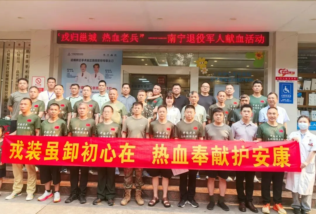 热血传温情,老兵显担当。4月11日,由南宁市退役军人事务局、南宁老兵跑团联合广西晶亮眼科医院共同开展的无偿献血公益活动温情落幕。退役军人志愿者用汩汩热血传递生命温度,以实际行动践行“退伍不褪色、奉献显担当”的军人本色,广西晶亮眼科医院全程提供场地支持与暖心健康服务,携手为谱写爱心公益新篇章。