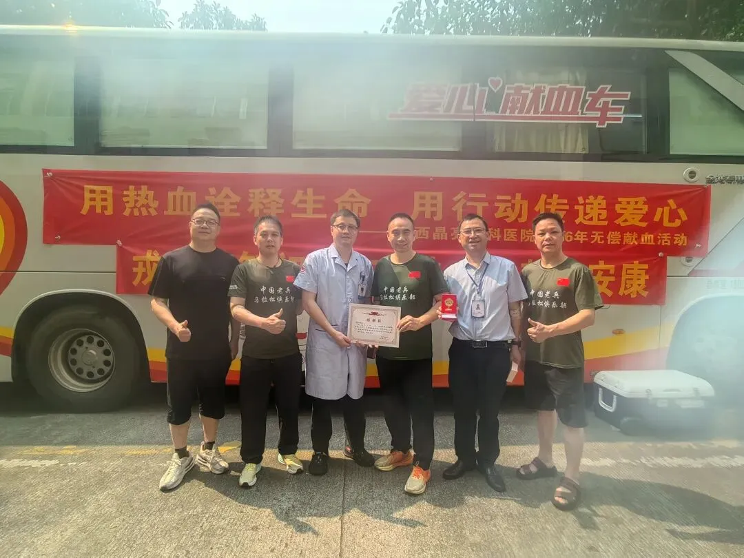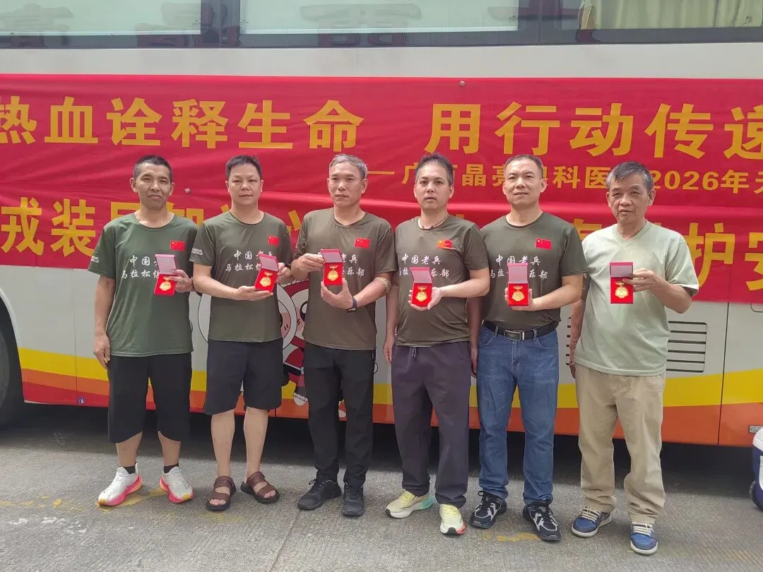 献血现场,大家纷纷表示,无偿献血是回馈社会、守护生命的公益善举,身为退役军人,更要主动扛起社会责任,传递正能量。作为本次活动的场地支持单位,广西晶亮眼科医院全力保障活动顺利开展,不仅精心布置活动场地、准备暖心饮用水和休息座椅,还贴心为每位到场献血的退役军人提供免费专业眼科检查服务,让老兵们在奉献爱心的同时,也能收获专属健康关怀。