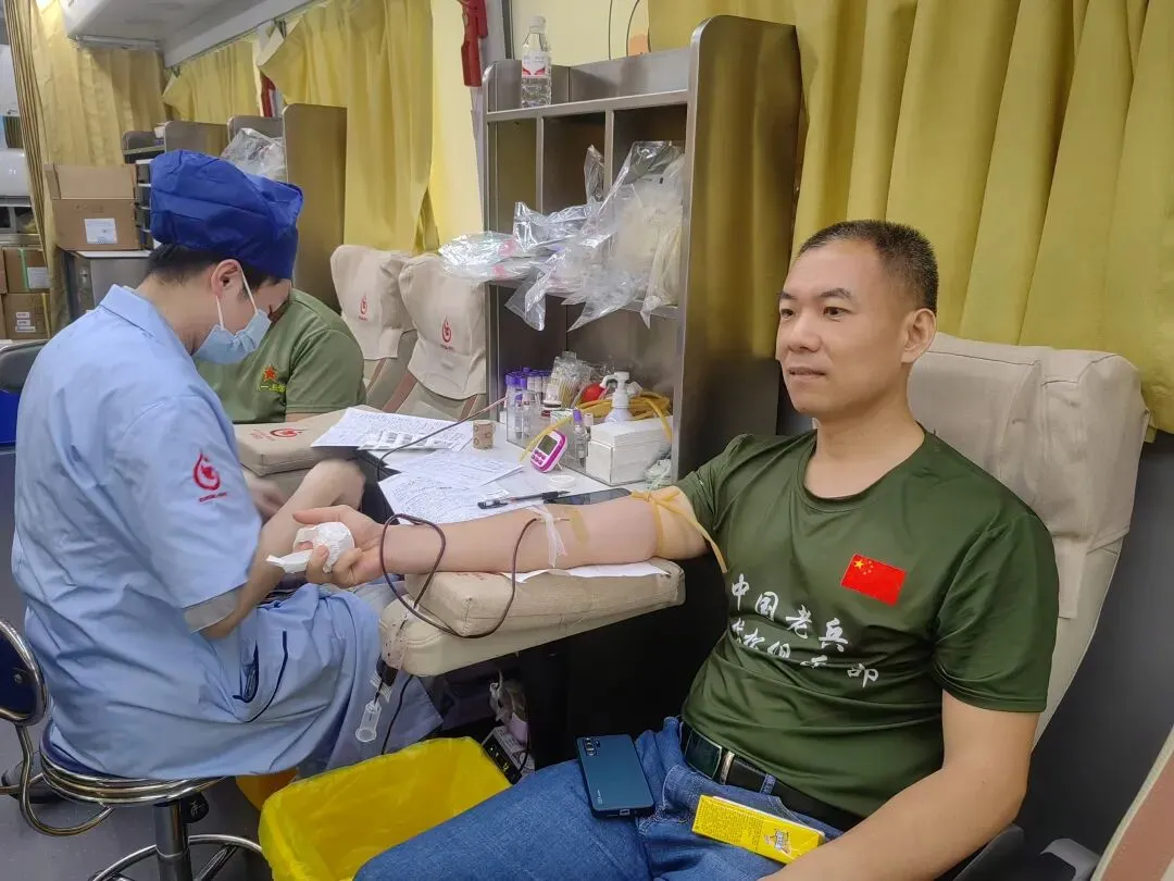 献血现场,战友们在工作人员的指引下,退役军人志愿者们有序登记填表、量血压、健康征询、血液初筛和献血。大家身着统一服装,身姿挺拔、纪律严明,全程自觉排队、配合默契,尽显退役军人优良作风。每一位参与献血的老兵都从容坚定,用实际行动诠释“退伍不褪色、奉献显担当”的军人本色。