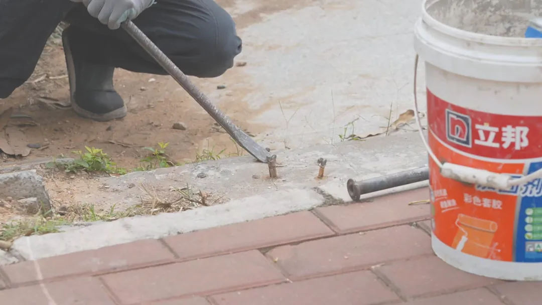 从那天起,王丁文就有了“职业病”——走在路上,他的眼睛不再只看前方,而是习惯性地扫视脚下。“走在路上发现哪里有钉子,我就给它清了。”只要发现路面上有凸起的钉子、钢筋等异物,他就会停下脚步,拿出随身携带的“装备”——角磨机、撬棍、铁锤和废弃油漆桶,弯腰蹲下清除这些安全隐患。