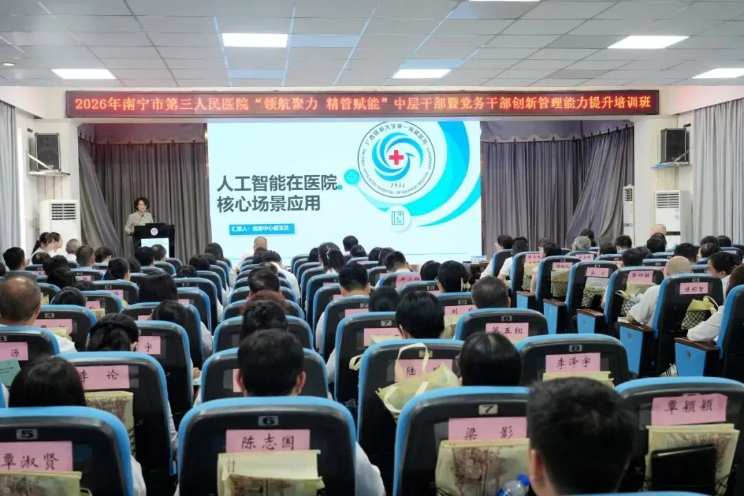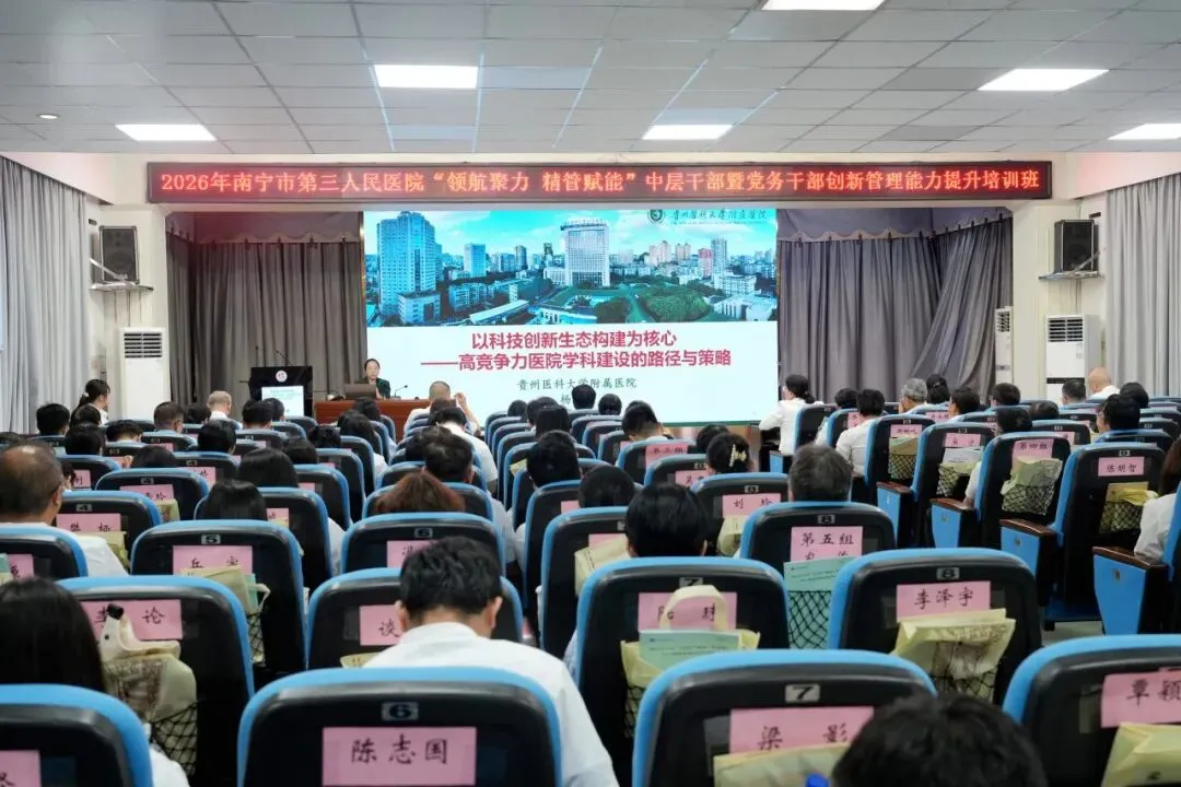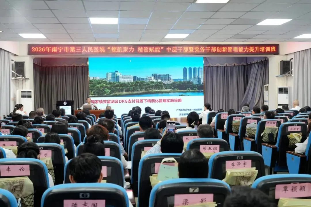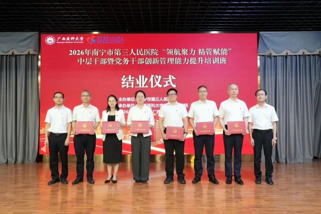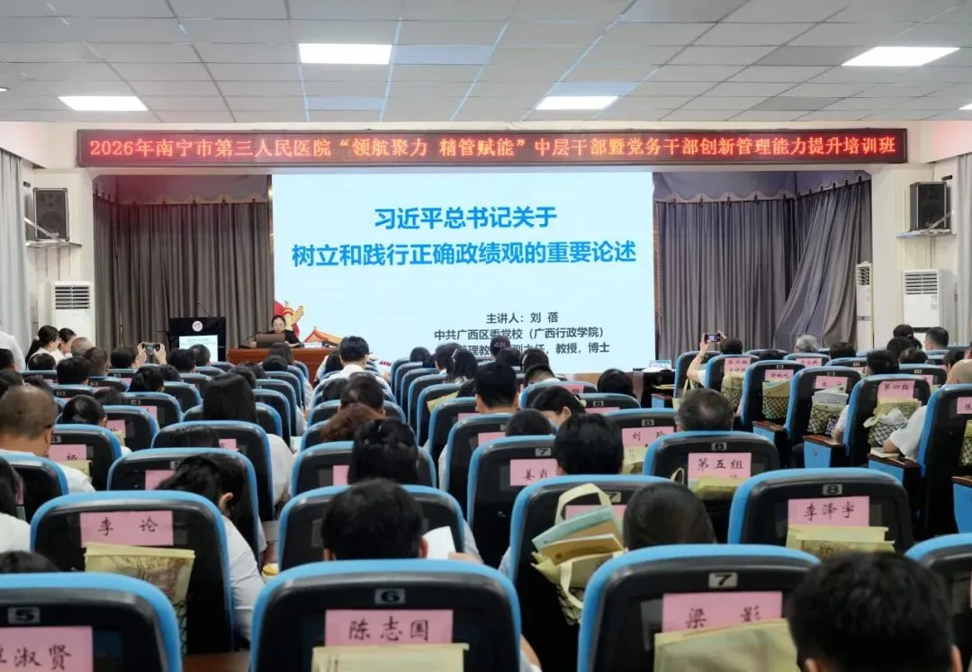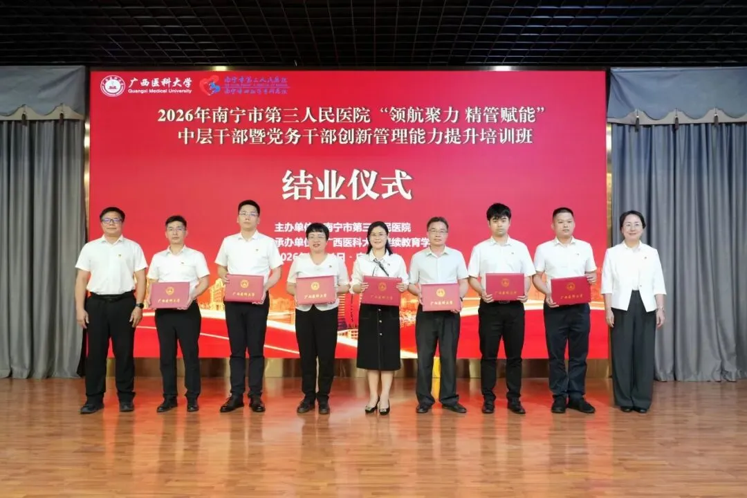 为深入贯彻落实党的二十大和二十届四中全会精神,全面提升医院干部队伍能力,为高质量发展提供坚实的人才支撑,4月11日,由南宁市第三人民医院主办,广西医科大学继续教育学院承办的“领航聚力 精管赋能”中层干部暨党务干部创新管理能力提升培训班成功举办。