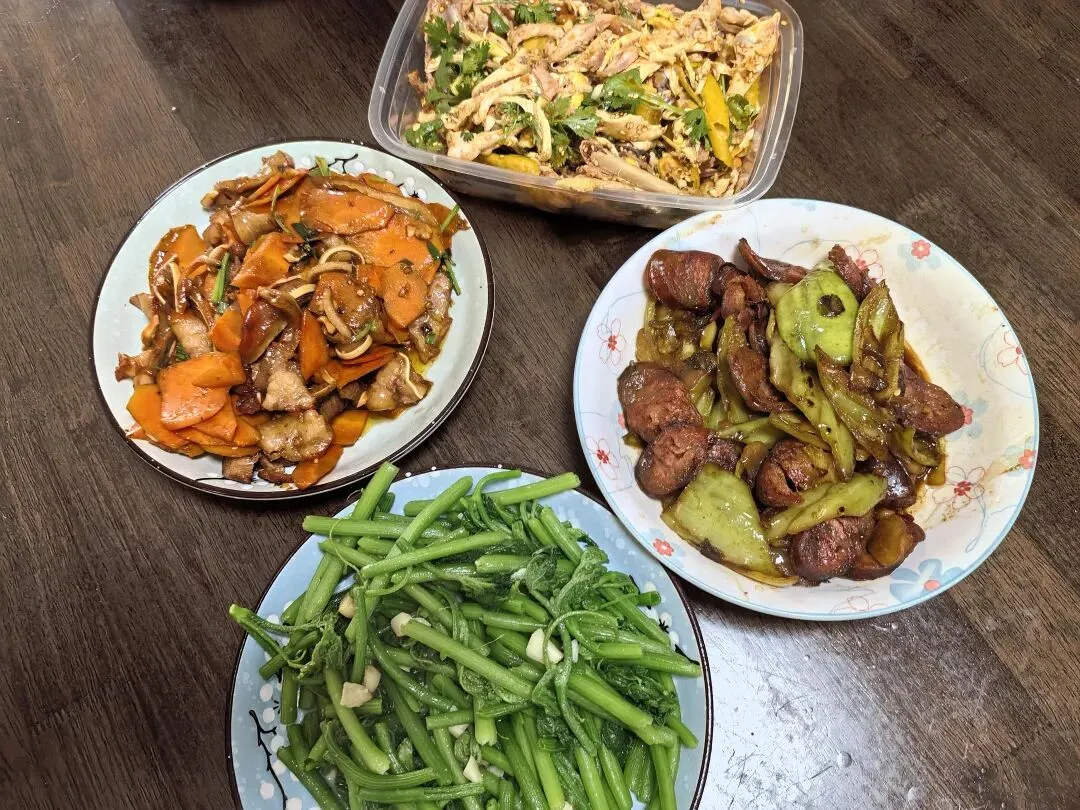 我让老公再去市场买一个肉类熟食,但他说再配一个青菜也差不多了。