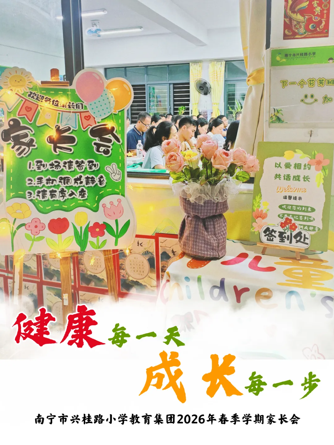 为深化家校协同,精准助力学生成长,南宁市兴桂路小学教育集团以“健康每一天,成长每一步”为主题,召开2026年春季学期家长会。本次家长会分年级定制、精准施策,聚焦各学段成长核心需求,为家长送上科学育儿指南。