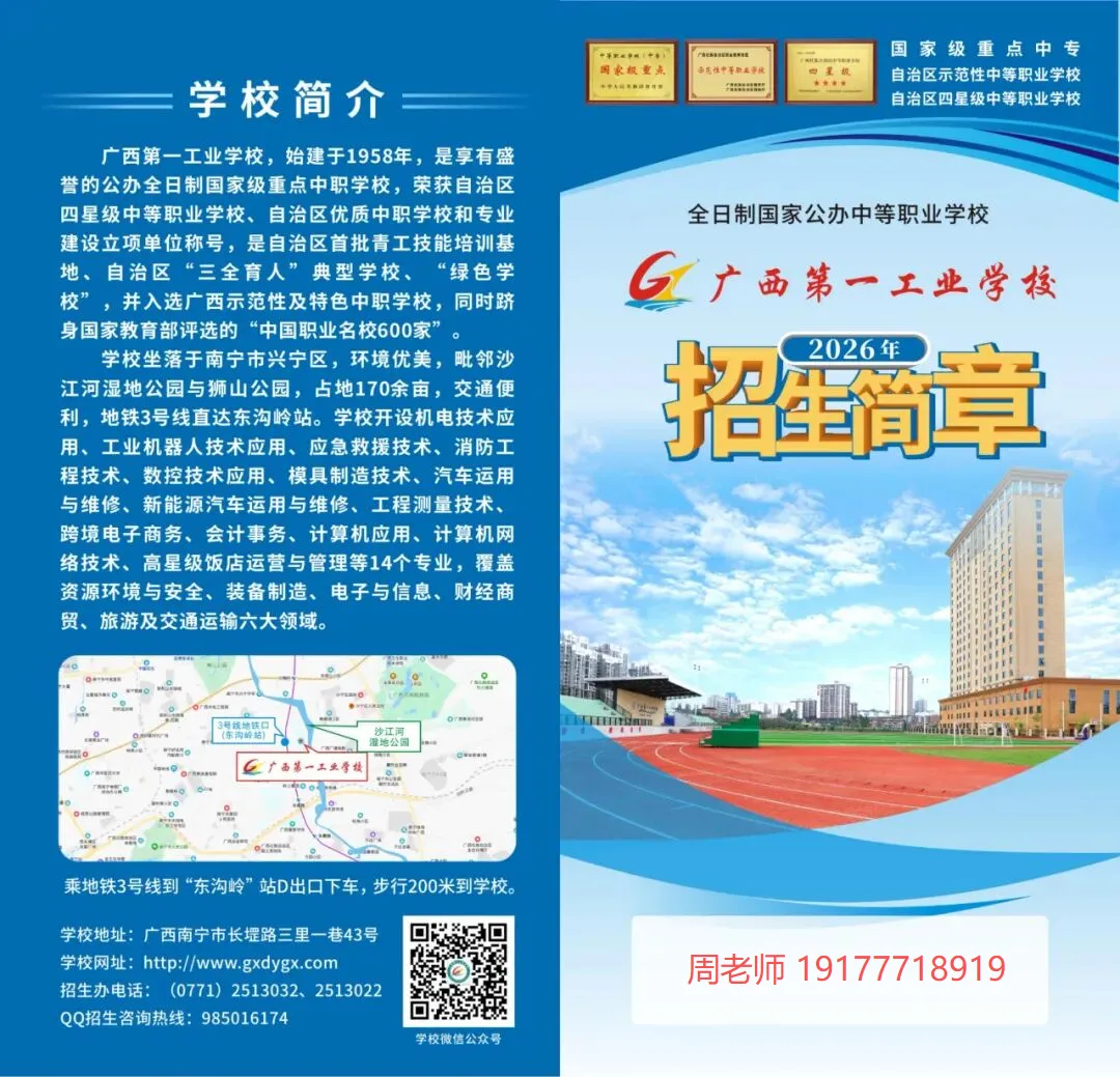 广西第一工业学校是一所享有盛誉的公办全日制国家级重点中职学校。对于有志于学习实用技能的学生来说,报读该校具有多方面的优势,并提供了丰富的专业选择。咨询报名:19177718919 周老师