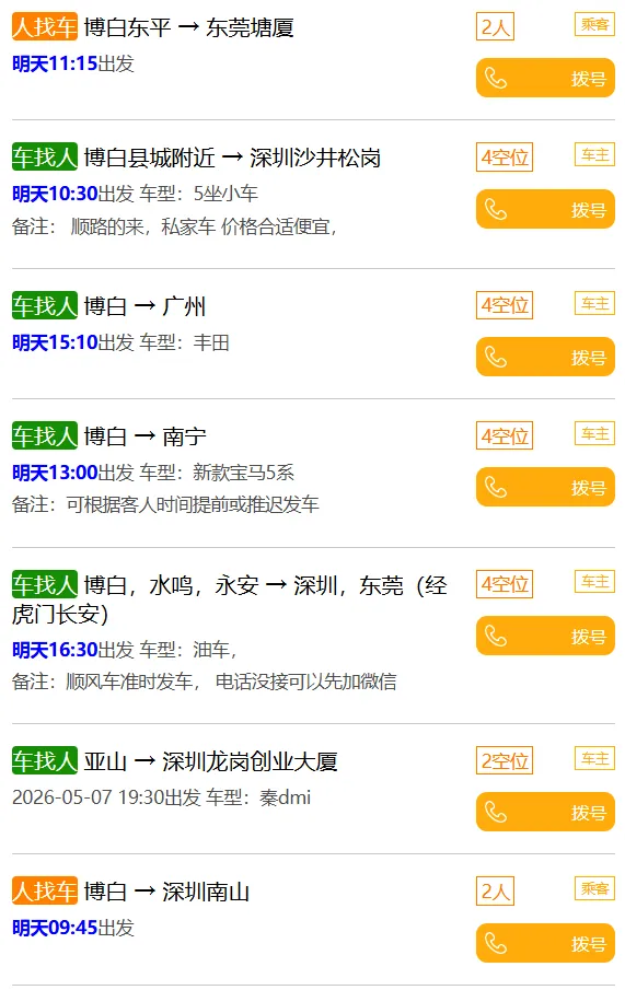 【4月12日】清明节 博白往返南宁、广州、深圳、珠海等拼车最新信息!