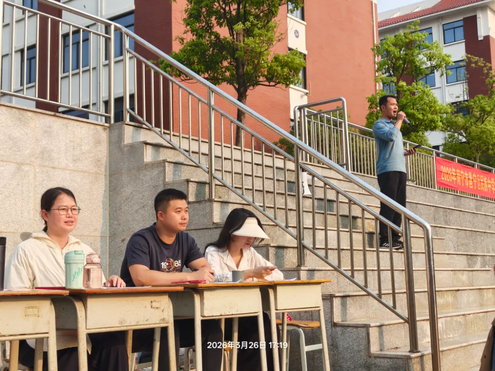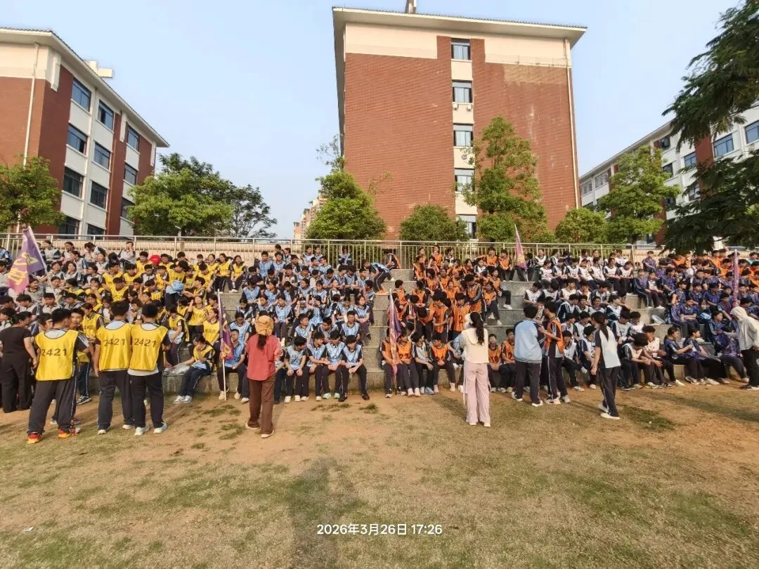 在学校领导的带领下,跑操比赛于2026年3月26日圆满落幕。本次活动筹备历时两周,全体八年级同学以高度的热情投入训练,充分利用每一次大课间的宝贵时间,反复打磨步伐、校准节奏、规范队列。赛前连续两天,年级统一组织集中彩排,各班班主任全程陪跑、细致指导,从队列排列到口号气势,从动作标准到精神面貌,逐一纠正、耐心点拨,用陪伴与坚守为同学们的赛场表现保驾护航,用责任与担当为活动的顺利开展筑牢根基。
