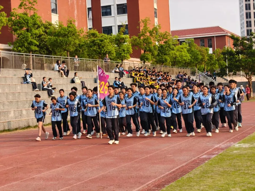 最震撼人心、令人动容的当属全年级同步跑操。26个班级、千余名学子,组成整齐庞大的队伍,迈着统一的步伐,向着同一个方向奔跑,真正实现了同频共振、气势如虹。队伍每经过一个观赛点位,全场学子便齐声呐喊两遍班级口号,铿锵有力的声音穿透云霄,响彻整个校园操场,震耳欲聋、此起彼伏。既有少年人的热血激昂,更有“沙场秋点兵”的豪迈气势,整齐的队列、坚定的步伐、嘹亮的口号,构成了校园里最壮观、最动人的画面,定格下青春最美的模样。 经过评委组的严格评审与综合打分,本次跑操比赛最终评选出以下获奖班级:
