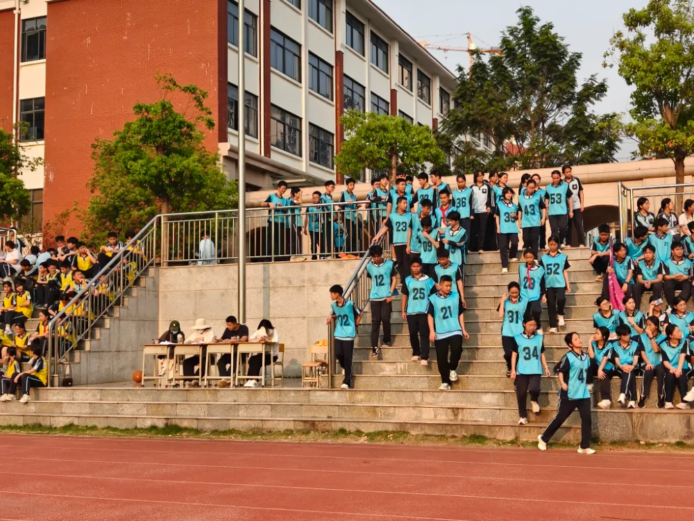 从活动筹备初期,部分班级队形散乱、步伐节奏不一的“野蛮生长”,到训练中反复打磨、精益求精,再到比赛现场横平竖直、严丝合缝的整齐队列,千余名八年级学子在短短两周内实现了质的蜕变与成长。比赛当天,阳光灼热、气温偏高,但同学们始终坚守纪律、毫不懈怠:候场时安静有序、坐姿端正,不喧哗、不打闹。上场时迅速集结、整齐列队,不拖延、不慌乱;奔跑中,即便体力消耗巨大,即便汗水浸湿衣衫,同学们也始终保持步伐一致。就连平时跑步能力较弱的同学,也咬牙坚持、奋力追赶,绝不掉队,用实际行动诠释了“团结一心、并肩作战”的集体精神,展现了新时代少年坚韧不拔、永不言弃的优良作风。